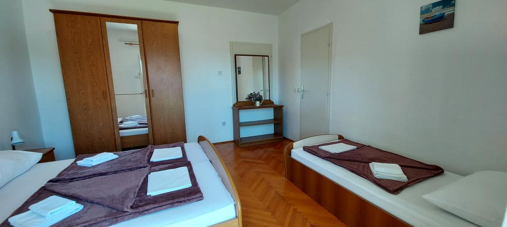 Od srca ga preporučamo svima, a posebno djeci! Veliki, prostrani apartman sa klimom u svakoj spavaćoj sobi. Bili smo u Hrvatskoj nekoliko puta i ovaj apartman je bio najbolji za našu obitelj. Domaćica Ana dočekivala nas je svaki dan kad smo išli na plažu. Blizina plaže, centra, pekare i trgovine. Puno restorana. Idealno mjesto za opuštanje i planinske ekspedicije.