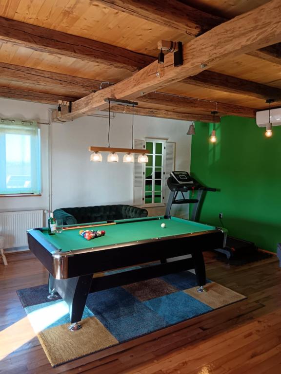 Novootvorena luksuzna kuca za odmor za 6 osoba, s pogledom na Sljeme u blizini pet toplica. Kompletno ogradjeno dvoriste od 1000m2. 'Bazen, jacuzzi, biljar, teretana, PS4, rostilj, kamin. 3 spavace sobe, 2 kupaonice, 3 toaleta. Open space kuhinja, blagavaonica, dnevni boravak u prizemlju. Moderno opremljena kuhinja s dva hladnjaka, perilicom sudja, indukcijskom plocom, pecnicom i mikrovalnom pecnicom, Dolce gusto aparatom za kavu, tosterom, kuhalom za vodu i kafetijerom. Sve su prostorije klimatizirane, a grijanje je plinsko etazno. U dnevnom boravku je TV 70" (MaxTV, Netflix).