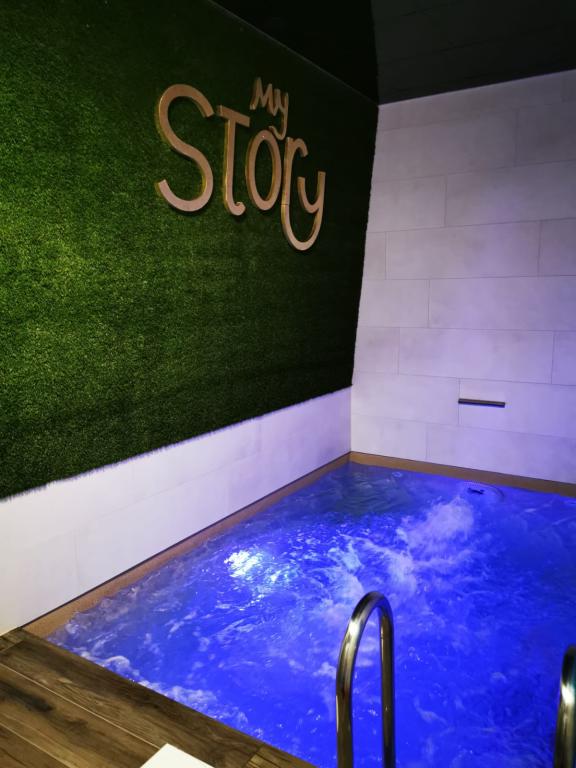 Dobrodošli Apartman My Story savršen je odabir za vaš odmor ili poslovni posjet Osijeku. Nalazi se u zapadnom dijelu grada na tek 10 minuta hoda do glavnog trga, katedrale, kazališta, javnih institucija i promenade uz rijeku Dravu. U moderno uređenom i posebnom pažnjom opremljenom apartmanu naši gosti mogu koristiti unutarnji grijani bazen koji je zahvaljujući protustrujnim plivanjem pogodan za kupače različitih plivačkih sposobnosti i stilova. Opustite se u turskoj kupelji koja ima umirujuće i anti-stress djelovanje, poboljšava cirkulaciju, olakšava respiratorne probleme, pomaže optoku limfe, pospješuje imunitet, pomaže u uklanjanju celulita. Unutarnji bazen površine 10 m2, a dubine 1,5 m sadrži protustrujno plivanje. Temperatura bazena 31 C. Wellness zona u sklopu apartmana i bazen namjenjena je samo za goste ovog apartmana. Kapacitet Apartmana je 2+1 dijete. Osiguran parking za osobni automobil s nadzornom kamerom