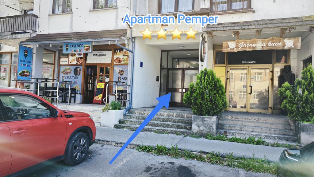 Apartman Pemper Self check in and check out U centru grada Otočca Autoput izlaz/ulaz 5 km Maksimalni kapacitet 5 osoba ( kinderbet i hranilica bez nadoplate) Spavaća soba, kupaonica, ostava, kuhinja, dnevni boravak, prostorija za pušače, sveukupna veličina Apartmana 60m². Rijeka Gacka, Bistro Ribič 1 km Zipline 'Pazi Medo' 20 km Pizzeria Ruspante, Sinac, Majerovo vrilo 10 km Utočište za mlade medvjede Kuterevo 20 km Pećinski park Grabovača 28 km NP Plitvička 50 km