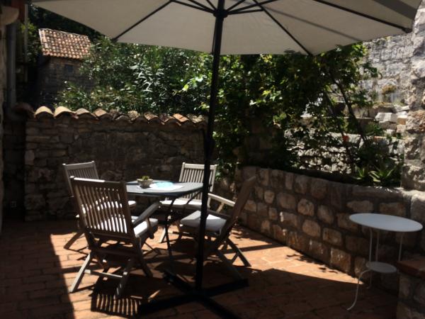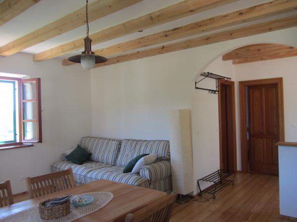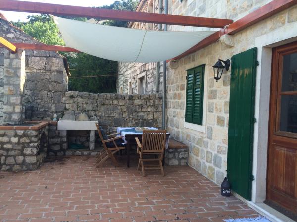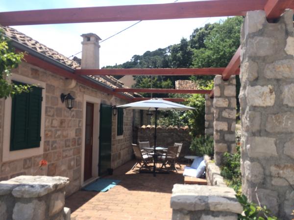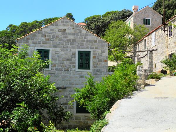 Nedavno obnovljena tradicionalna kamena kuća u etno selu Goveđari u srcu Nacionalnog parka Mljet. Kuća se sastoji od dva apartmana koji imaju odvojene ulaze i terase i funkcioniraju samostalno, a također se može iznajmiti i kao kompletna kuća za veći broj ljudi. Apartman br. 1 je veličine 60m2 s terasom od 30m2, kompletno uređen sa svime za ugodan i komforan boravak 4 osobe ( 2 osobe na sofi u dnevnom boravku). Apartman br. 2 je veličine 90m2 s terasom od 60m2, s dvije zasebne spavaće sobe i otvorenim grillom na terasi. Komotan za boravak 4 osobe. Oba apartmana su opremljena sa svim potrebnim za ugodan boravak: štednjak, pećnica, hladnjak, zamrzivač, toster, kuhalo za vodu, mašina za pranje rublja, grijanje, klima uređaj, LCD-TV, DVD, wireless internet... Objekt je udaljen 10 minuta lagane šetnje puteljkom kroz borovu šumu od Babinih kuća i Velikog jezera, pješačke i biciklističke zone. Selo Goveđari su malo i pitoreskno mjesto savršeno za miran odmor.