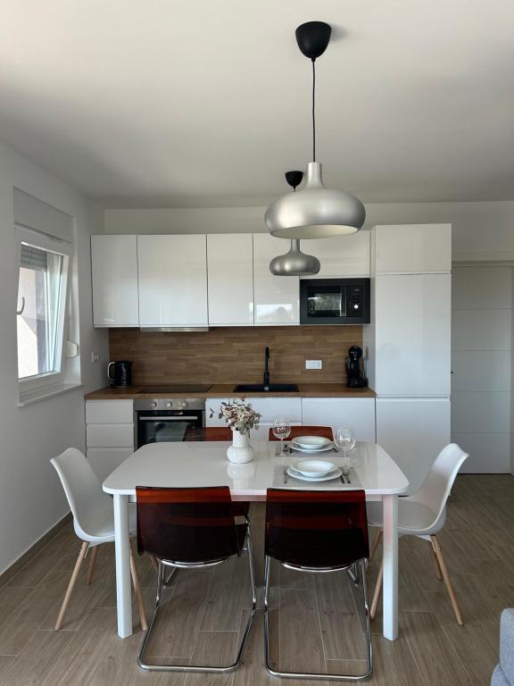 Novouređeni apartman, potpuno opremljena kuhinja s aparatima. Klimatizirani prostor. Dvije velike spavaće sobe s dva vrlo udobna kreveta, udobni madraci i jastuci. Velika terasa za uživanje s pogledom na more, najljepše ujutro za ispijanje kave i navečer za odmor nakon kupanja. Dnevni boravak velik, veliki TV sa satelitom. Plaža i more su zaista u blizini. Svima za preporučiti.
