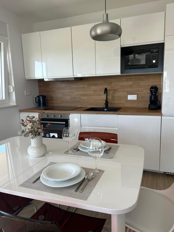 Apartman je novi, udobno opremljen, prostran, savršen za odmor svega 100 metara do plaže. U kuhinji je aparat za kavu, kuhalo, mikrovalna, pećnica, suđerica, veliki TV sa satelitom i perilica rublja. Ulica uredna i mirna. More čisto i toplo. Savršeno za odmor. Preporučujemo.