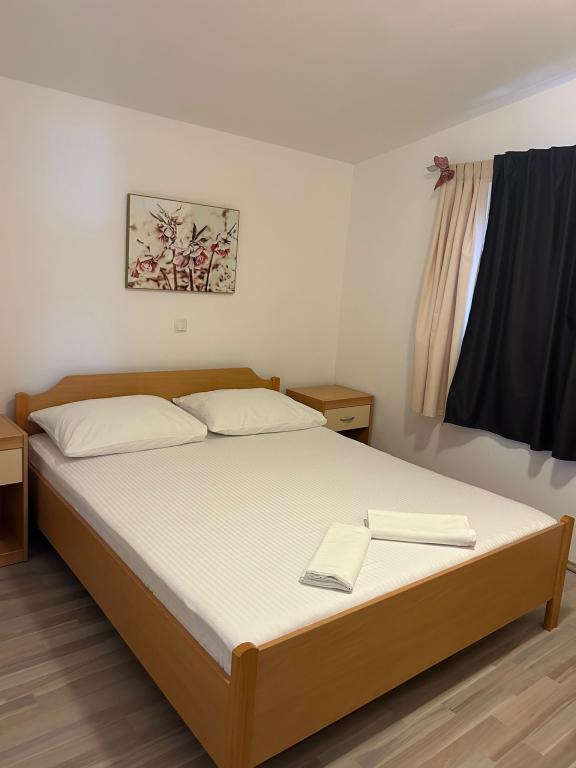 Apartman Marko nalazi se na prvom katu obiteljske kuće, koji Vam pruža savršeno mjesto za odmor. Sadrži spavaću sobu s bračnim krevetom, kuhinju (hladnjak, štednjak, posuđe, kuhalo, mikrovalnu,toster), kupaonicu (tuš kabina) te dnevni boravak s velikim pomoćnim ležajem ( 160 x 220 ), blagavaonskim stolom i TV-om. U dvorištu se nalazi velika okućnica sa stolovima, kaminom te osiguranim parkingom. Uz sve to apartman ima veliku terasu (25 m2) s pogledom na more, a plaža je udaljena svega 250 metara. Centar koji sadrži kafiće, restorane, trgovine i ljekarnu udaljen je 500 metara od navedenog apartmana. Ukoliko želite pobjeći od gradske užurbanosti i buke, Apartman Marko je idealan za Vas, uz sve navedeno važno je za napomenuti da ste sami na katu kuće ( bez okolnih apartmana i gostiju ). Ukoliko želite pobjeći od gradske užurbanosti, buke i stresa mi smo tu za Vas!