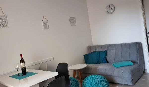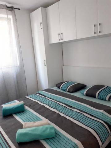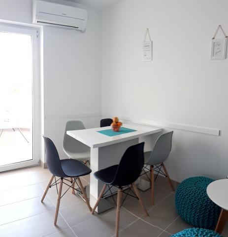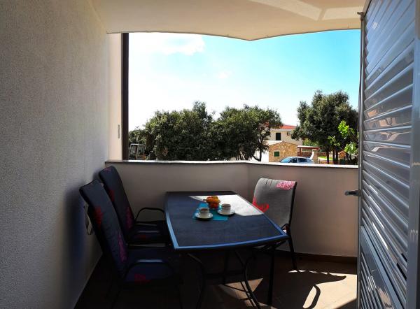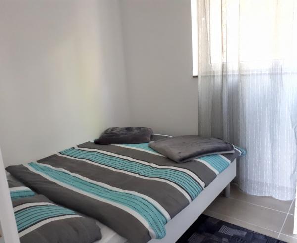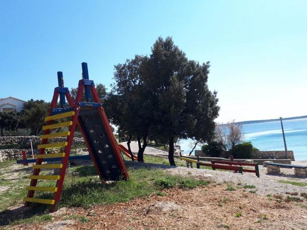 Novouređeni dvosobni apartman, dvije spavaće sobe, boravak s kuhinjom, kupaona terasa, blizina plaže na 4min. hoda, 10min hoda do centra, 10km od poznate plaće Zrće, pogodan za obiteljska ljetovanja, u blizini igrališta za djecu u mirnoj ulici, . Apartman se nalazi u prizemlju zgrade s pogledom na more, terasom na južnoj strani, u cijeni uključeno korištenje svih aparata, te wifi, grill, parking. Plaže sitan šljunak, betonske, pješćane, sa hladom. Kućni ljubimci zabranjeni.