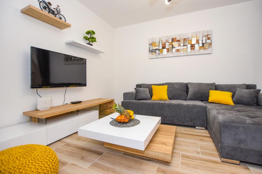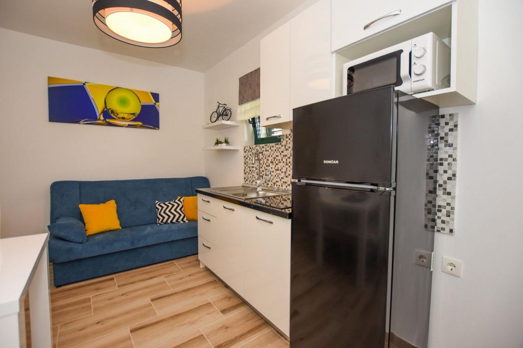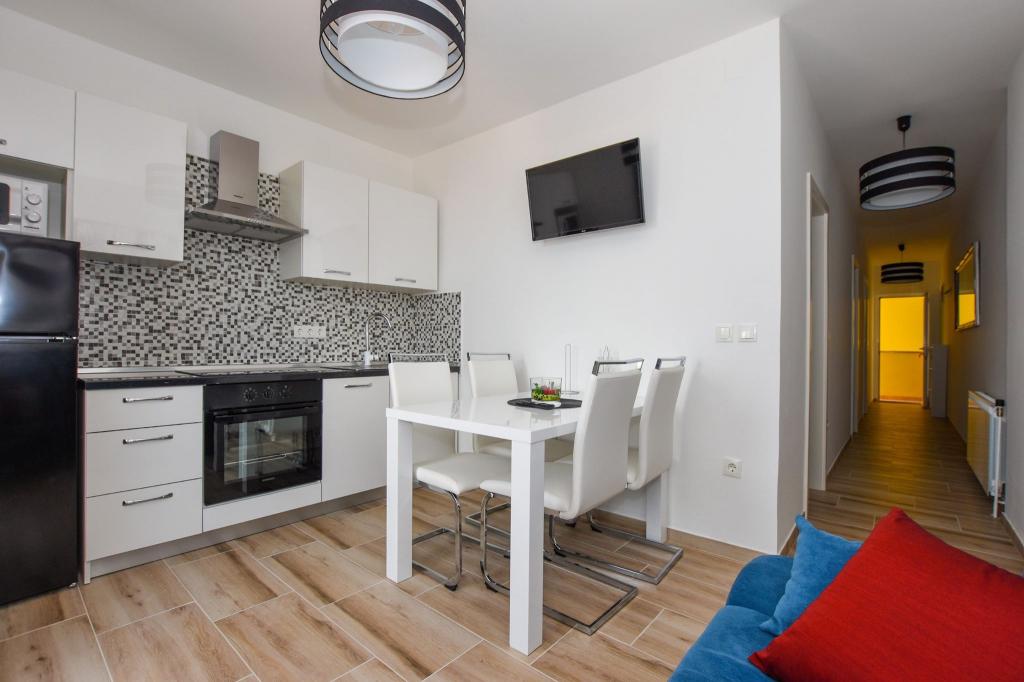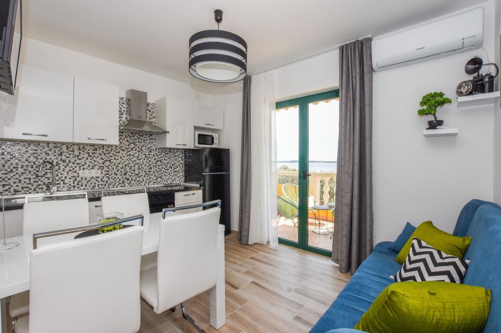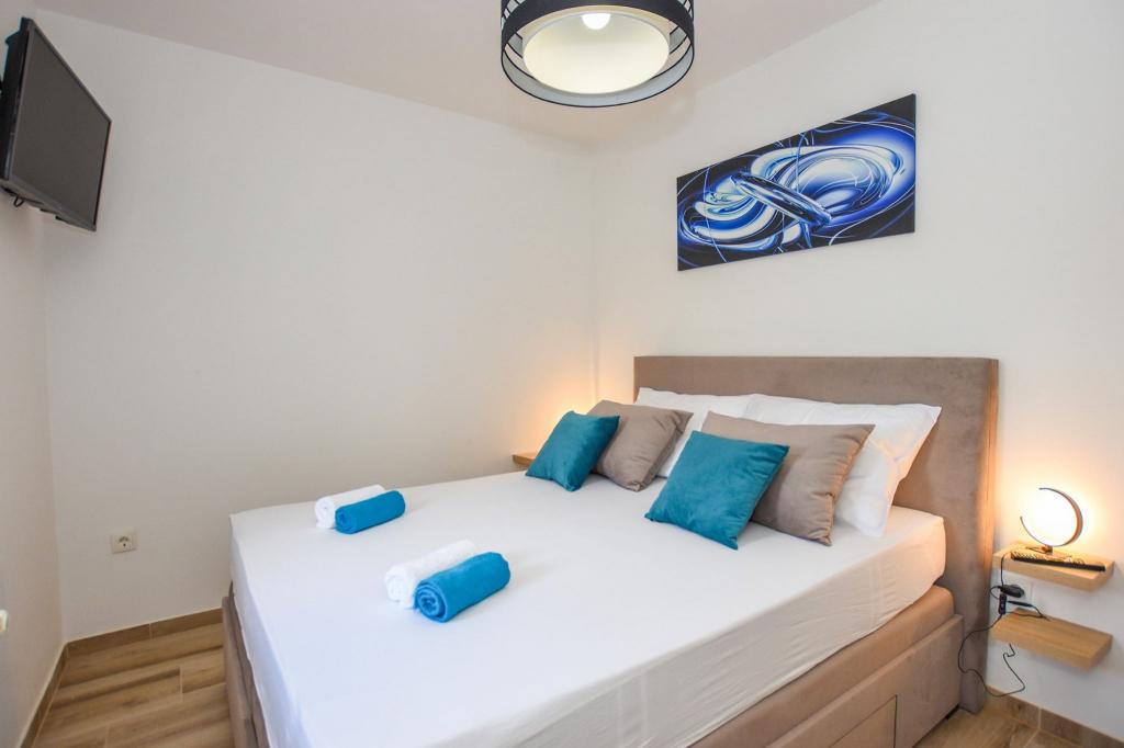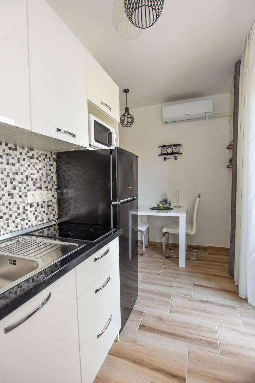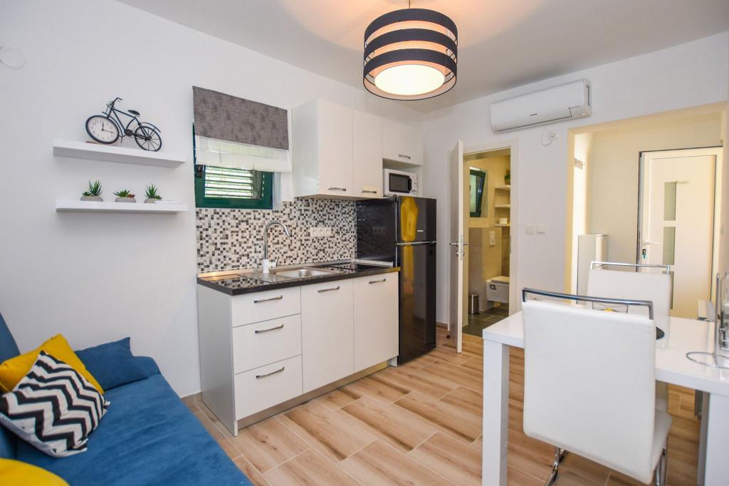 6 NOVO MODERNO UREDENA apartmana, sve jedinice uključuju klima-uređaj, vlastitu kupaonicu s tušem i kuhinju s perilicom suđa, hladnjakom, tosterom i kuhalom za vodu te zajednička prostorija za potrebe pranja, sušenja i peglanja robe, besplatan Wi-Fi, led TV, aparat za kavu, krevetić za djecu. Privatan besplatan parking u krugu od 50 metara. Gostima je na raspolaganju terasa za pojedine jedinice. U krugu od 20 metara nalaze se predivne plaže, kafići, dječje igralište, restorani, trgovina te igraonica.