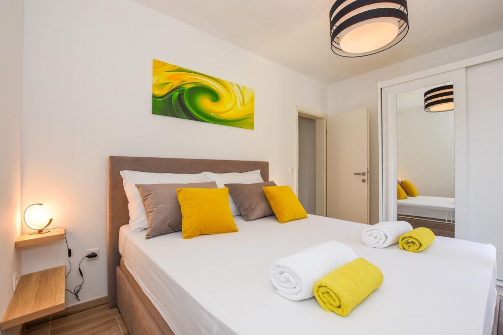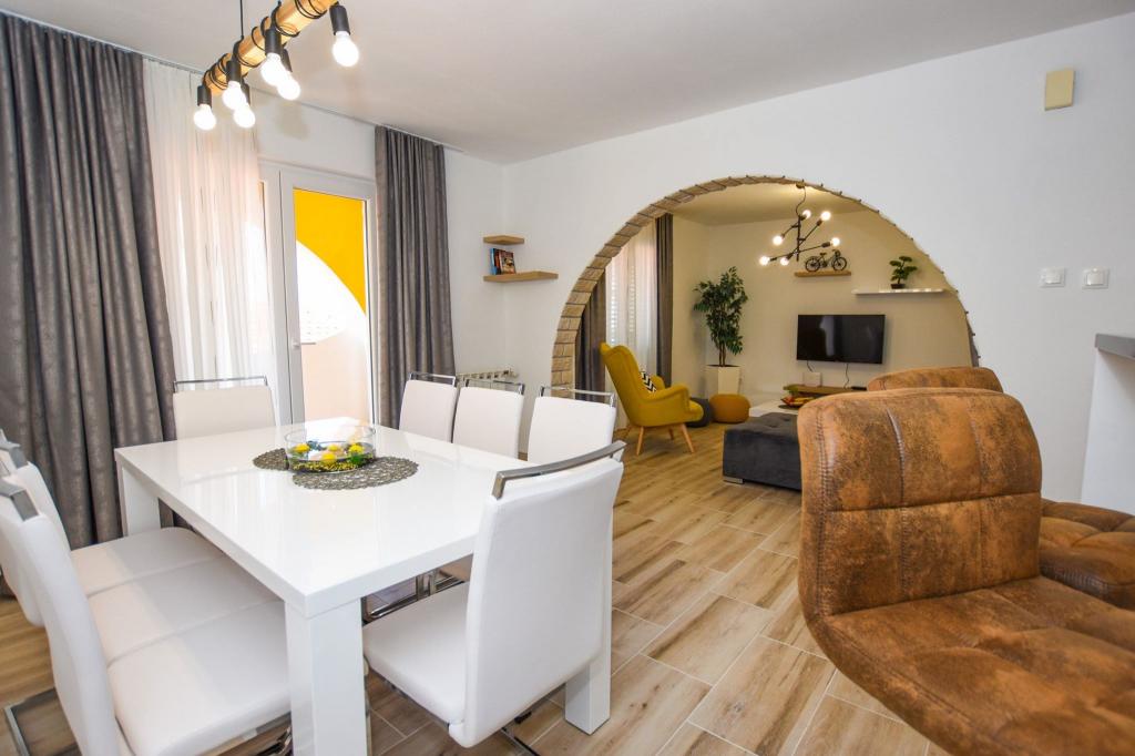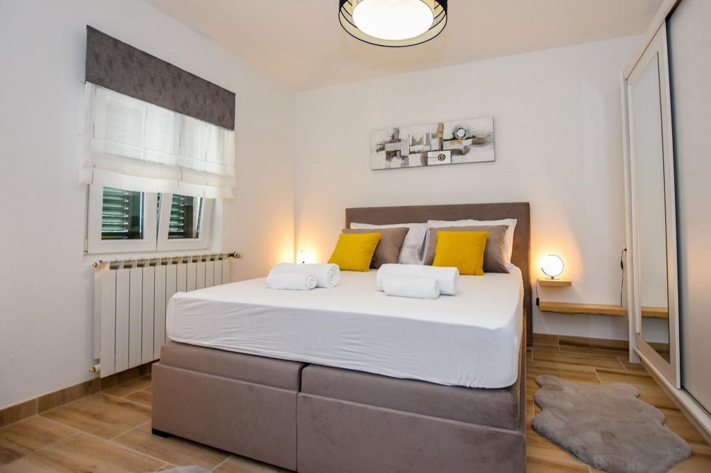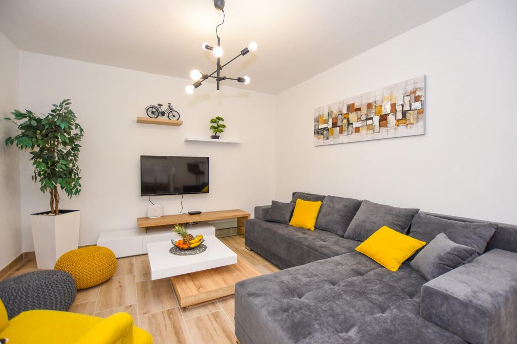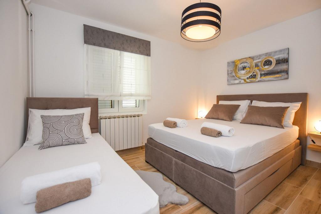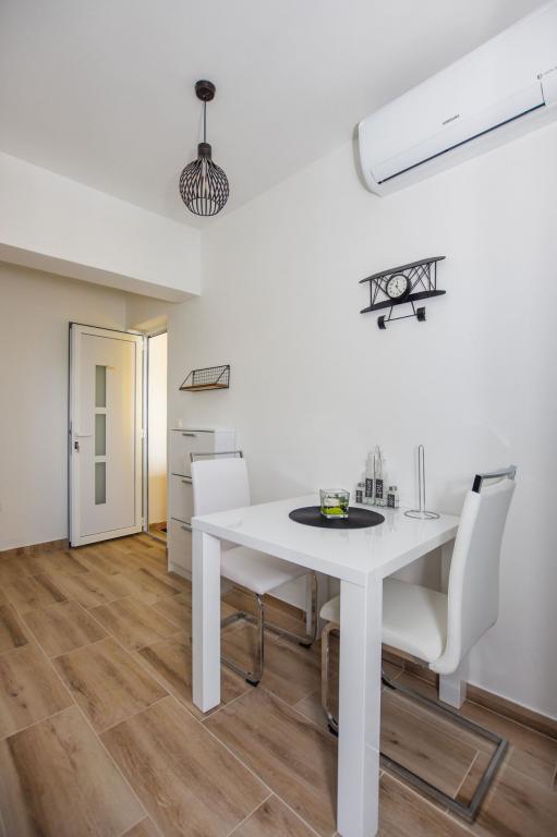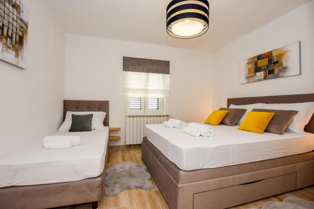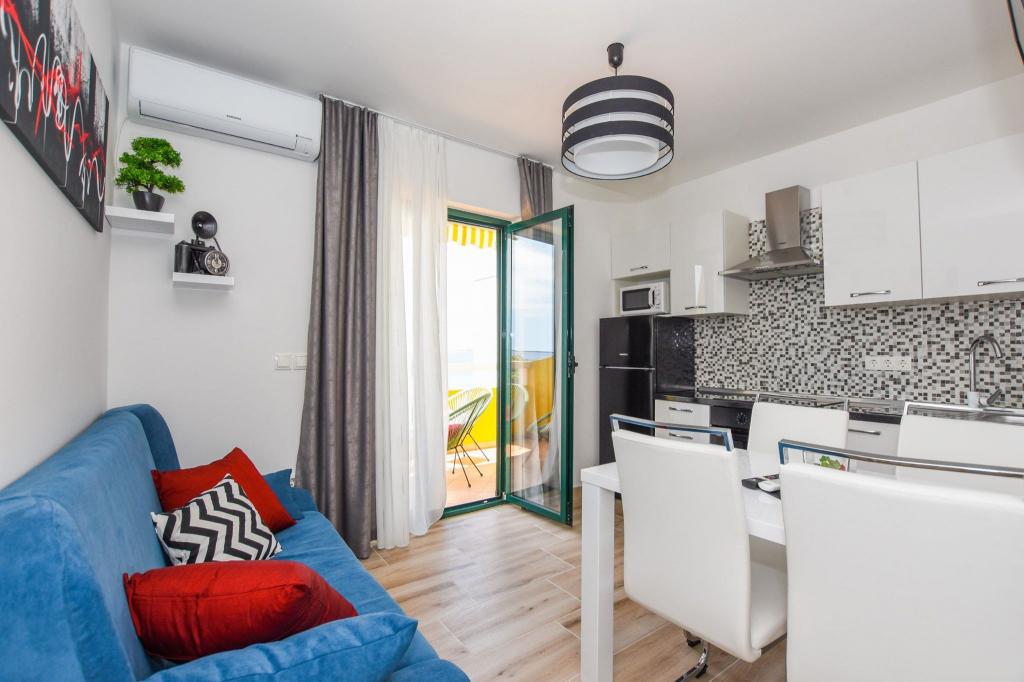 6 NOVO MODERNO UREDENA apartmana, sve jedinice uključuju klima-uređaj, vlastitu kupaonicu s tušem i kuhinju s perilicom suđa, hladnjakom, tosterom i kuhalom za vodu te zajednička prostorija za potrebe pranja, sušenja i peglanja robe, besplatan Wi-Fi, led TV, aparat za kavu, krevetić za djecu. Privatan besplatan parking u krugu od 50 metara. Gostima je na raspolaganju terasa za pojedine jedinice. U krugu od 20 metara nalaze se predivne plaže, kafići, dječje igralište, restorani, trgovina te igraonica.