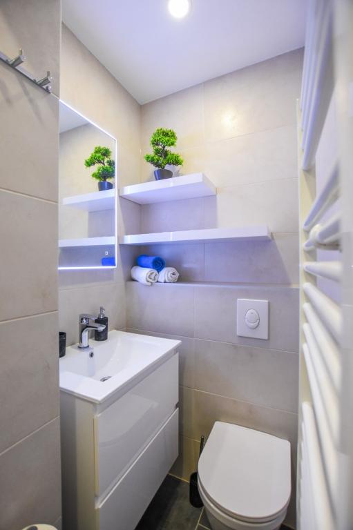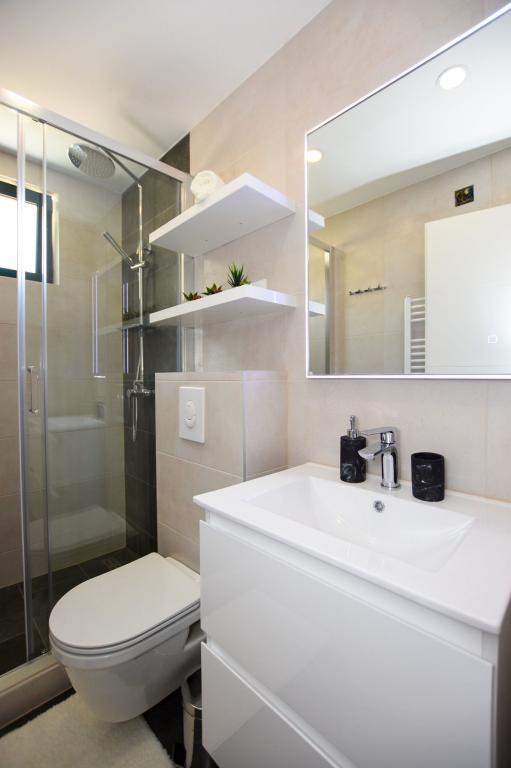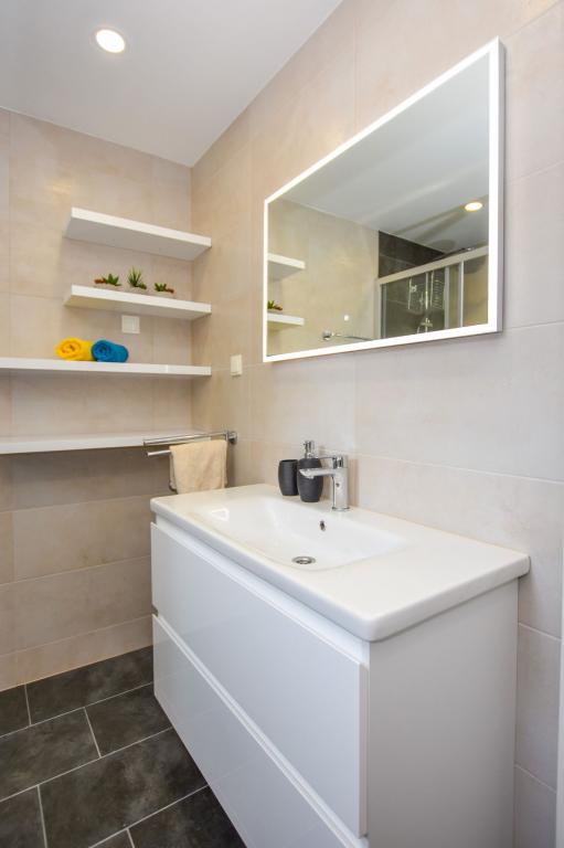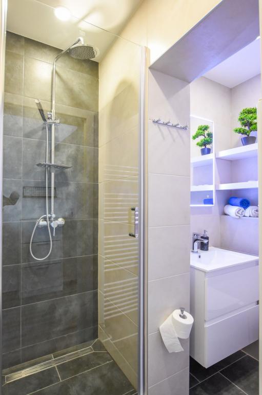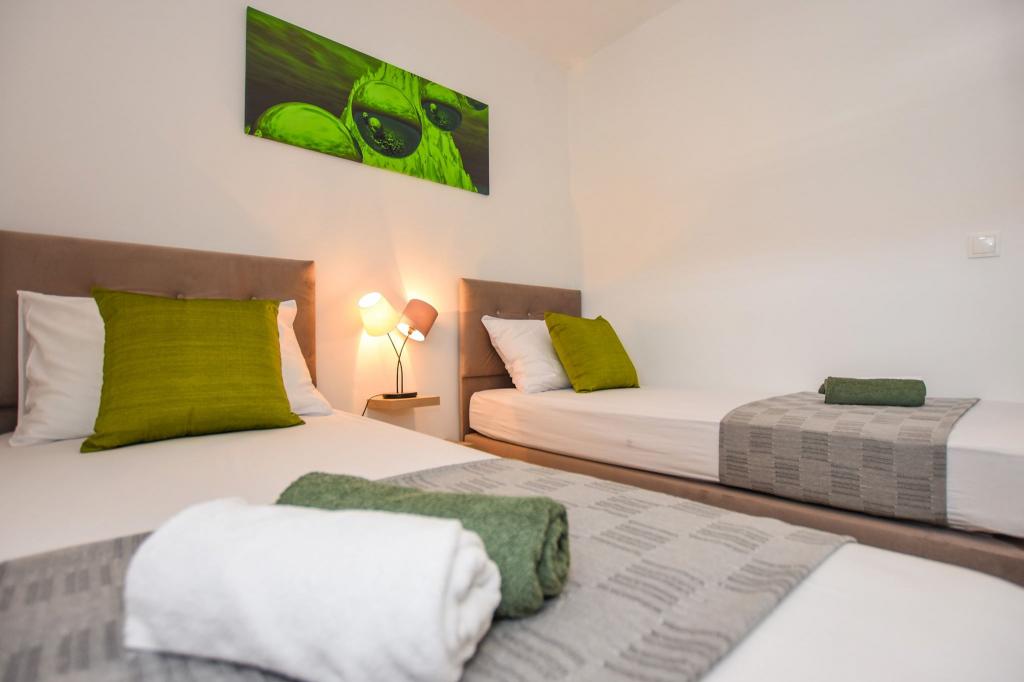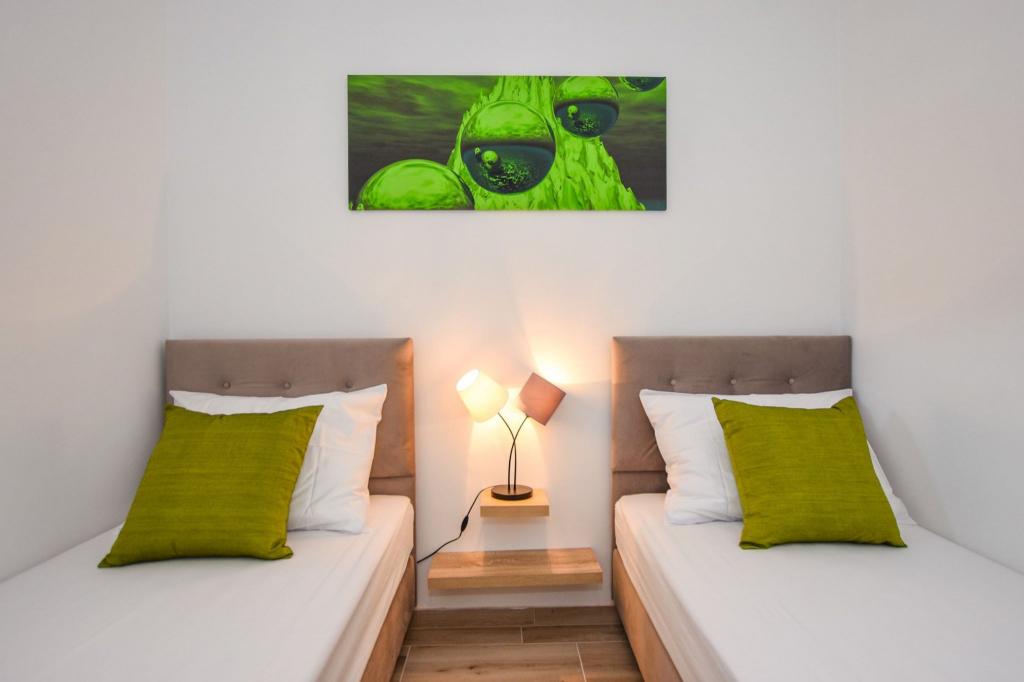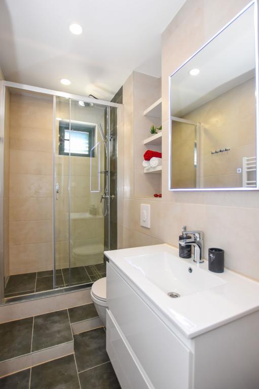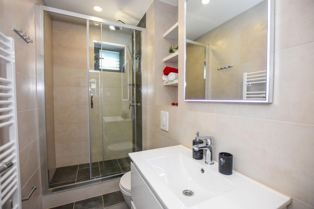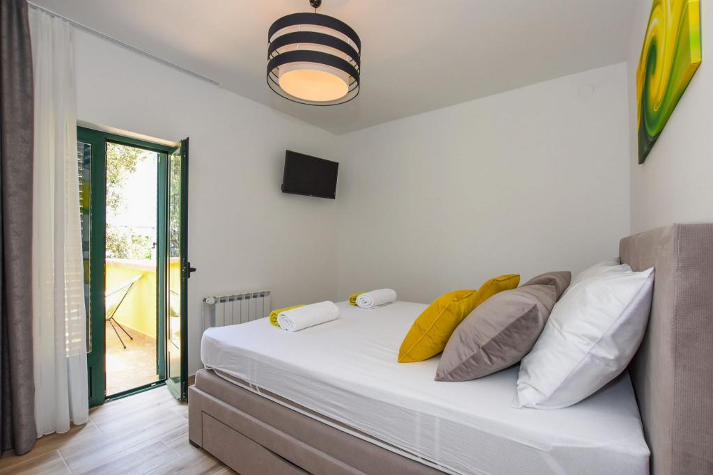 6 NOVO MODERNO UREDENA apartmana, sve jedinice uključuju klima-uređaj, vlastitu kupaonicu s tušem i kuhinju s perilicom suđa, hladnjakom, tosterom i kuhalom za vodu te zajednička prostorija za potrebe pranja, sušenja i peglanja robe, besplatan Wi-Fi, led TV, aparat za kavu, krevetić za djecu. Privatan besplatan parking u krugu od 50 metara. Gostima je na raspolaganju terasa za pojedine jedinice. U krugu od 20 metara nalaze se predivne plaže, kafići, dječje igralište, restorani, trgovina te igraonica.