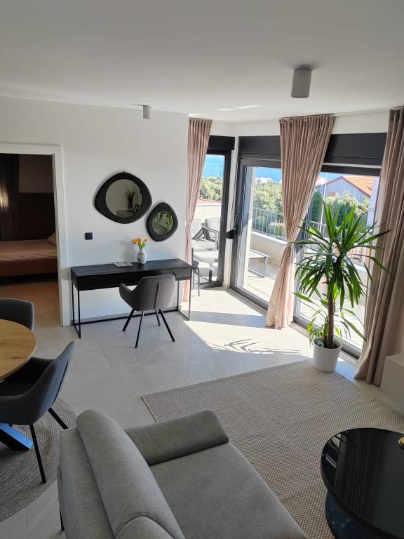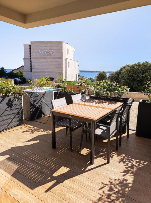 Kompletno i suvremeno opremljen apartman s prekrasnim pogledom na more i zalaske sunca. Objekt se nalazi 10 minuta hoda do plaže i centra sa nekoliko luksuznih kafića i restorana. Udaljeni smo 15 km od Novalje i grada Paga. Mandre su turističko središte Općine Kolan, smješteno na južnoj strani otoka Paga sa prekrasnim pogledom na Silbu i Olib te na otočiće Maun i Škrdu, koji obiluju uvalama i prekrasnim plažama. Mandre imaju vrlo razvedenu obalu, sa 3 kilometra dugim šljunčanim plažama. Jednako toliko duga, mjestom prolazi i štetnica uz koju su nalaze brojni kafići i restorani u kojima, osim paškog sira i janjetine, možete uživati u svježoj morskoj hrani uhvaćenoj od strane lokalnih ribara. Otok Pag obiluje prirodnim ljepotama, ali ga i blizina nacionalnih parkova čin privlačnim odredištem. Na našem području, svakako Vam savjetujemo posjete siranama u Kolanu kako biste sa sobom odnijeli okus Kolana u komadu sira po kojem su mještani poznati diljem svijeta.