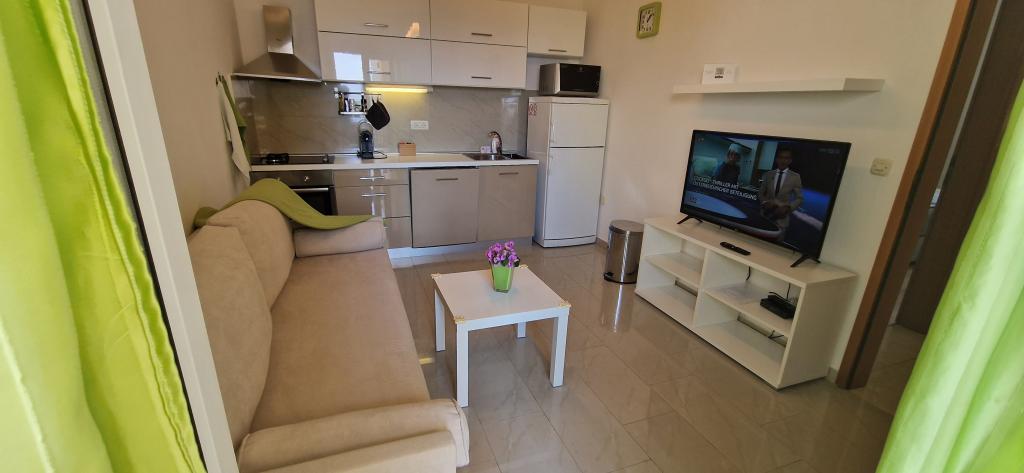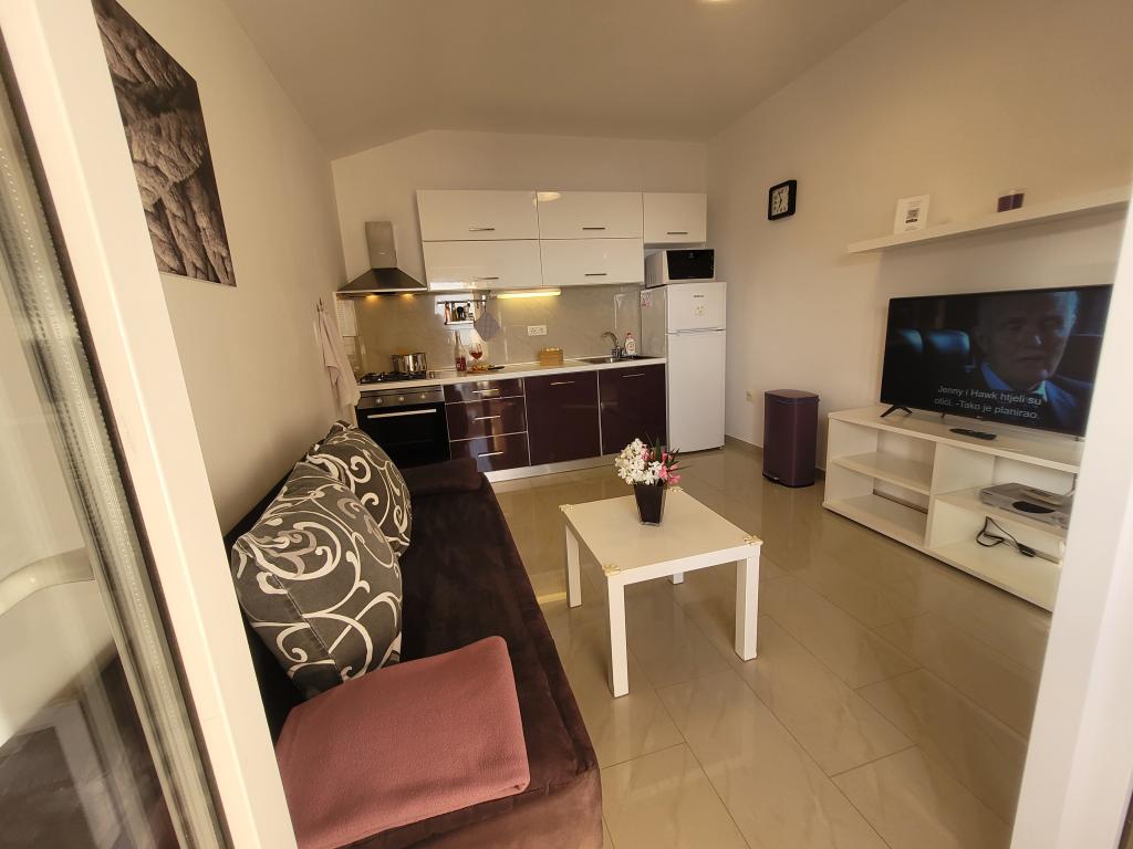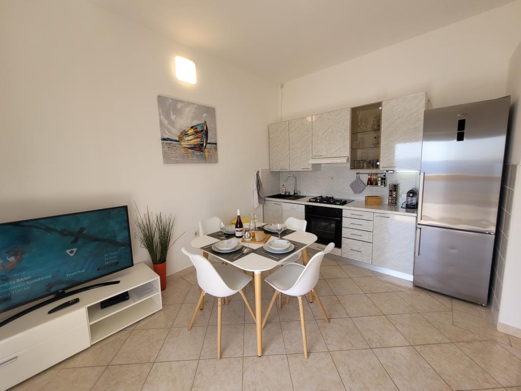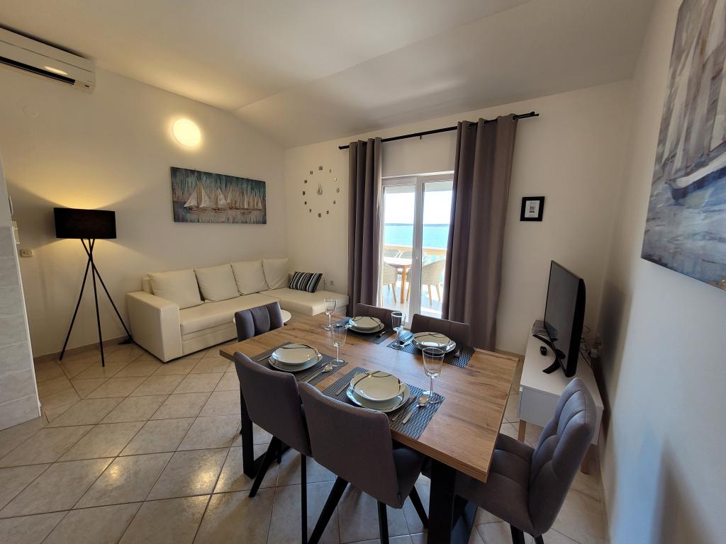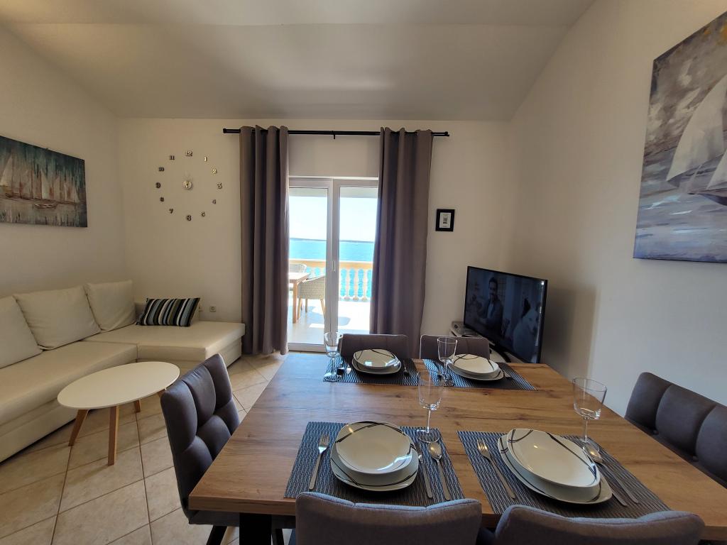 Turistička pristojba je uključena u cijenu.Odlično, vlasnici. Mega opremljen stan sa svim sadržajima. Potpuno opremljena kuhinja. Doslovno 20m od mora, prekrasno okruženje i pogled s terase, nevjerojatan. preporučujem!