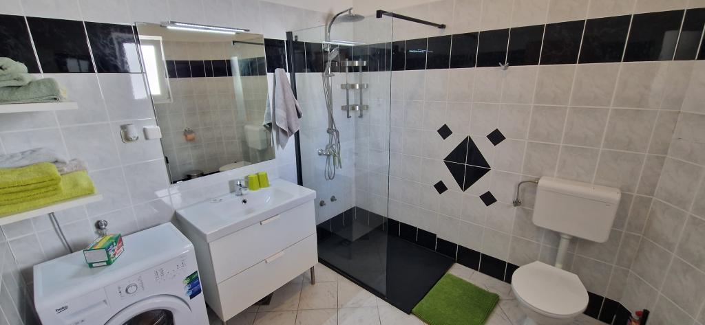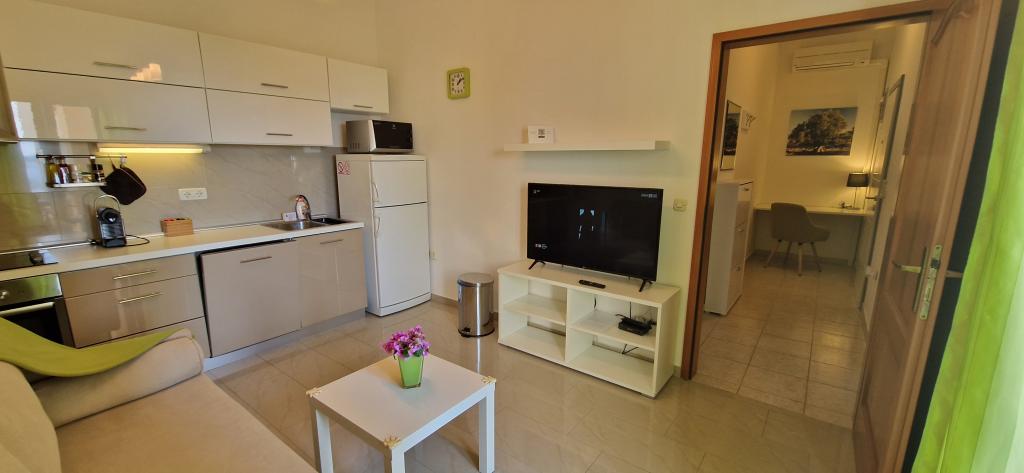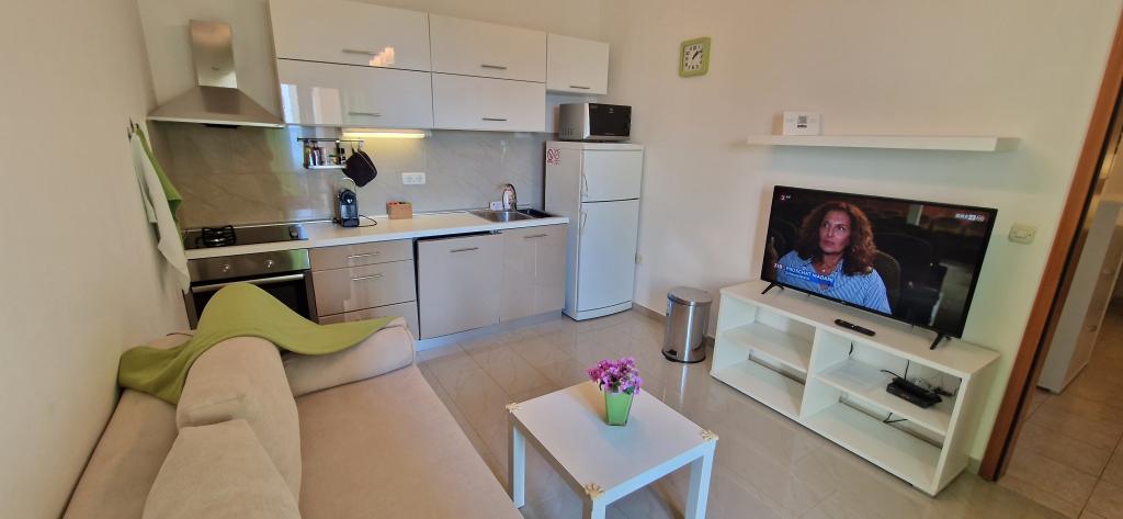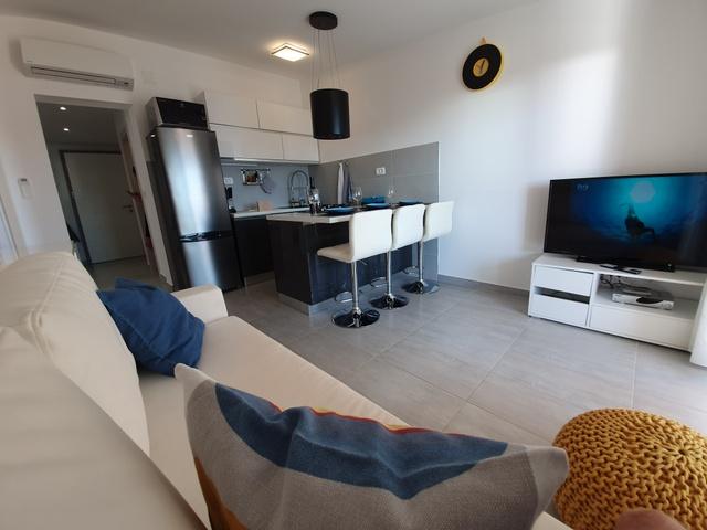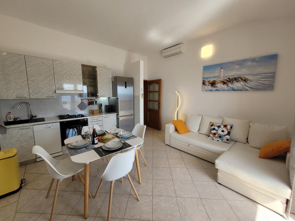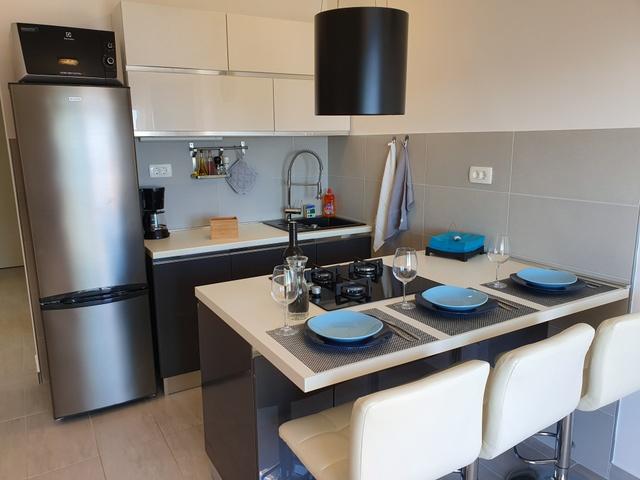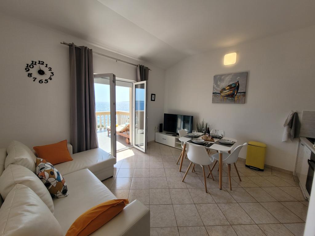 Turistička pristojba je uključena u cijenu.Odlično, vlasnici. Mega opremljen stan sa svim sadržajima. Potpuno opremljena kuhinja. Doslovno 20m od mora, prekrasno okruženje i pogled s terase, nevjerojatan. preporučujem!