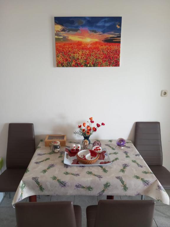 Imali smo 2 sobni stan na gornjem katu. Sve što trebate je dostupna, uređaj je vrlo čist. Na dobrom veličine balkona možete ručati i opustiti lijepo. Ima prekrasan pogled koji se nalazi na samoj zemlji. Roštilj, vrtni namještaj i vrtni tuš su također dostupni. Stanodavci su vrlo prijateljski, korisna i često daju savjete. Wirürden bilo koje vrijeme ostati tamo opet. Mandre sama je malo mirno mjesto gdje se možete opustiti lijepo.