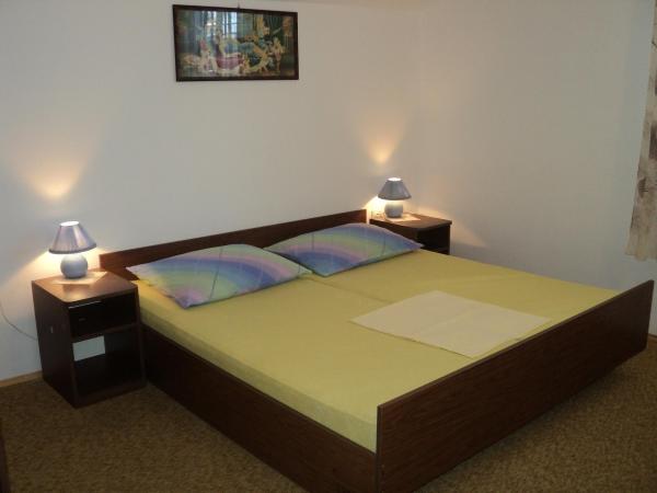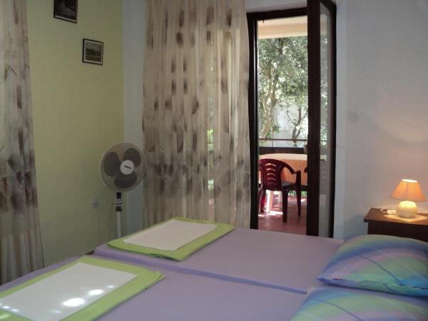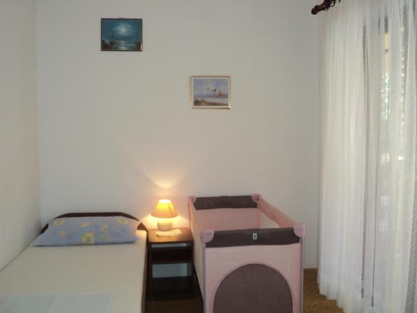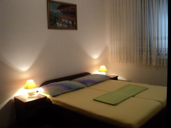 Apartmani se nalaze u samom centru mjesta udaljeni od trgovine oko 50 m, a plaže 100 m. Apartman 6+1 ima tri spavaće sobe, boravak, kuhinju (hladnjak, zamrzivač, mikrovalna, štednjak, aparat za kavu) kupatilo (tuš i kada), balkon i klimu (nije u cijeni), prvi kat. Apartman 4+1 ima dvije spavaće sobe, dnevni boravak, kuhinju (hladnjak, zamrzivač, štednjak, mikrovalna, aparat za kavu), kupatilo (tuš) i terasu (prizemlje). Posteljina uračunata u cijenu. Gril, sat tv, parking. Mjesto ima dugačku šetnicu uz more, pogodno je za vožnju biciklom, rolanje i šetnju. Moguć najam čamaca i skutera u mjestu.Apartmani su prostrani i pruzaju udobnost vlastitog stana.