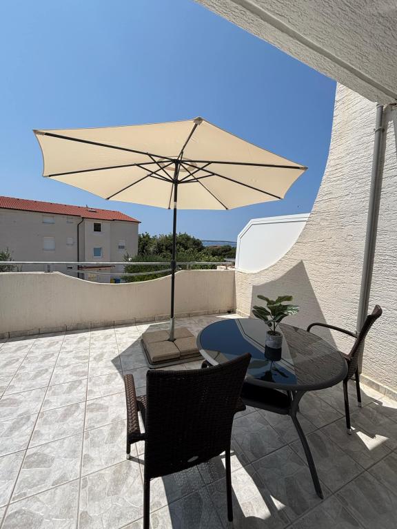 Apartmani Matija smješteni su u mirnoj i ugodnoj ulici, okruženi zelenilom, što ih čini idealnim izborom za opuštajući odmor. Do prekrasne plaže stiže se laganom šetnjom za pet minuta, dok se u neposrednoj blizini nalaze trgovina, pekara, kiosk te štandovi s voćem i povrćem. Gostima su također na raspolaganju brojni kafići, restorani, suvenirnice i bankomat. Svi apartmani su opremljeni kako bi vam osigurali maksimalnu udobnost tijekom boravka. Svaki apartman ima terasu s pogledom na more, TV, klima uređaj te besplatan bežični pristup internetu.