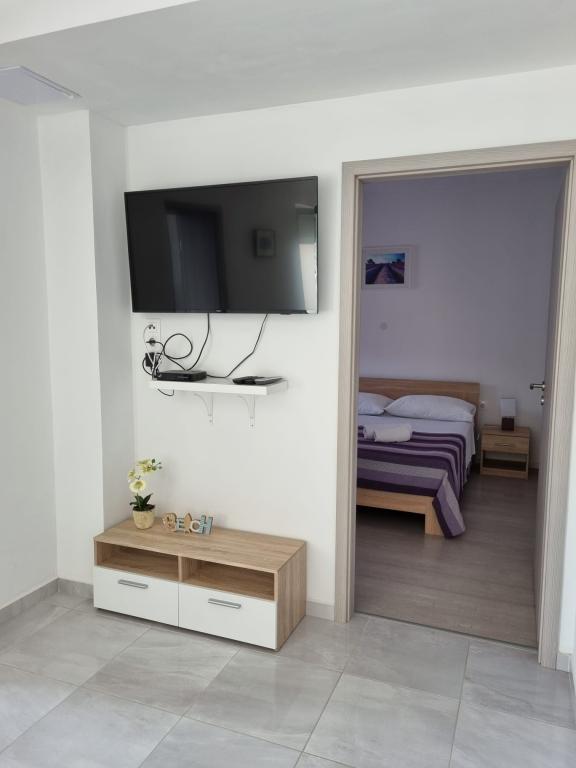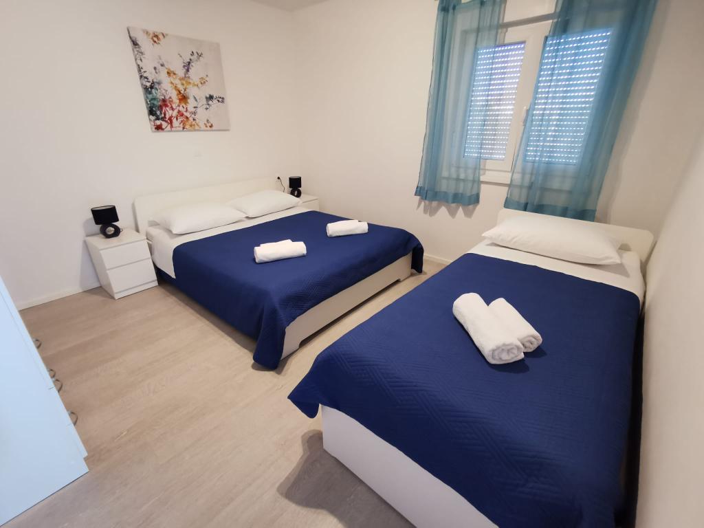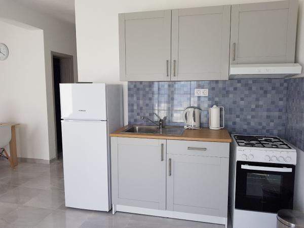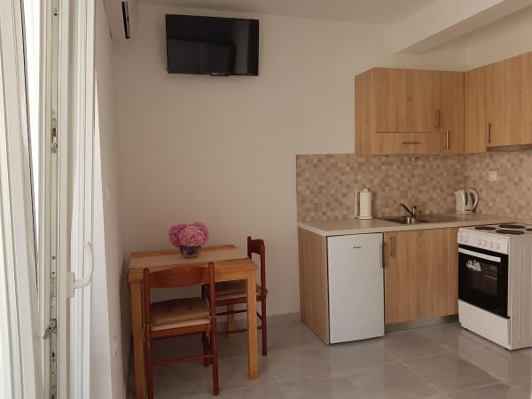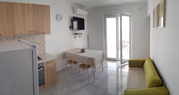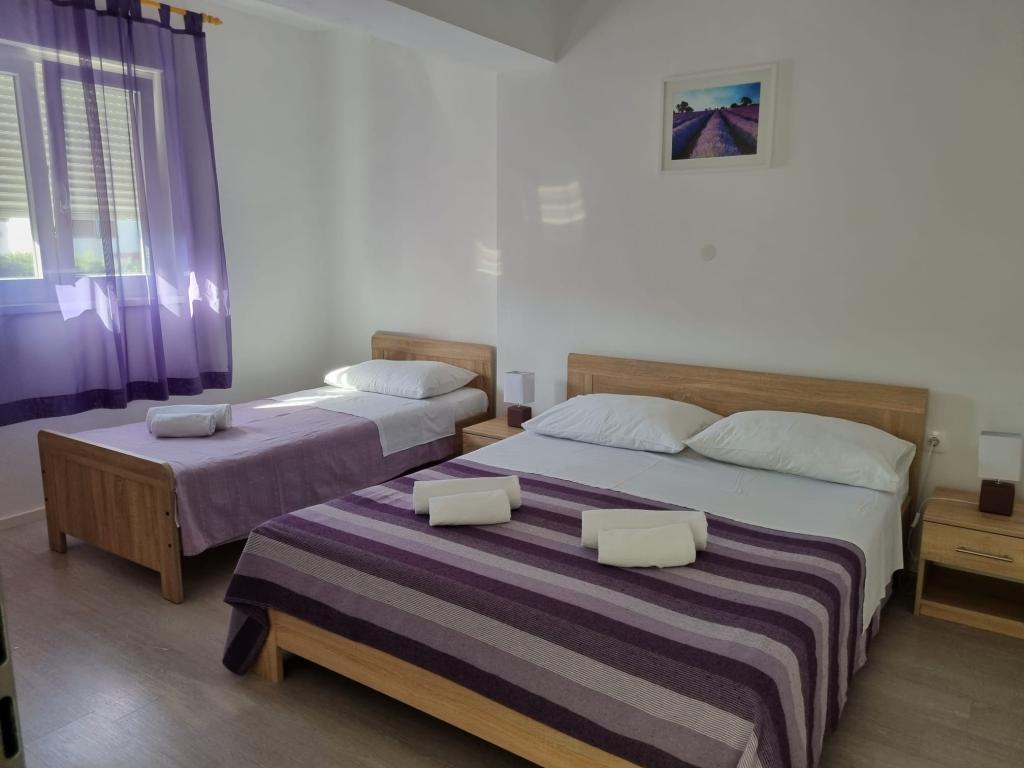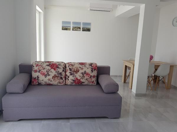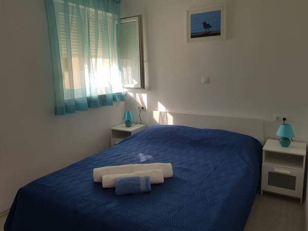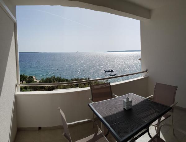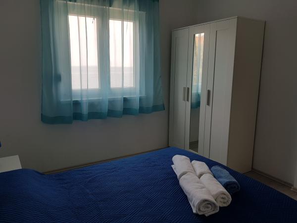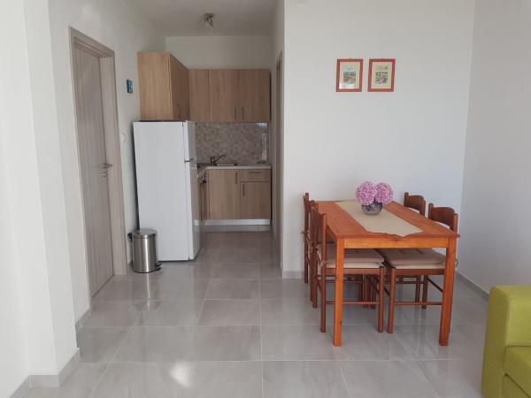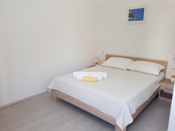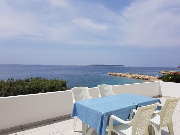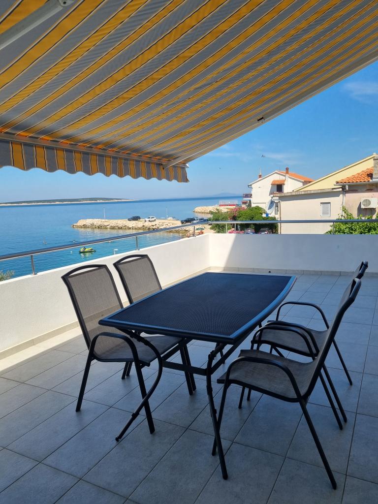 Naši apartmani se nalaze uz samo more, u središtu Mandri, na otoku Pagu. Svi apartmani se nalaze na 1. katu naše obiteljske kuće, pa stoga pružaju prekrasan pogled na more. Apartmani su novouređeni, te opremljeni internetom, klimom, TV/SAT, potpuno opremljenim kuhinjama, te kao dodatak, na svim prozorima uz rolete možete spustiti komarnike, kao zaštitu od komaraca. Svaki apartman ima svoje parkirno mjesto, te se svi gosti mogu služiti roštiljem u vrtu. Kroz naše dvorište, izlazite direktno na plažu, tako da vam je za ugodan odmor na suncu, potreban samo ručnik preko ramena! Iznimno se veselimo Vašem dolasku!