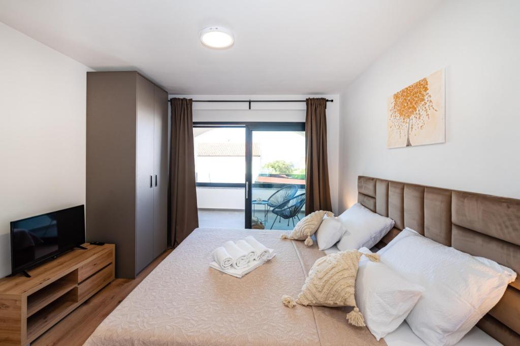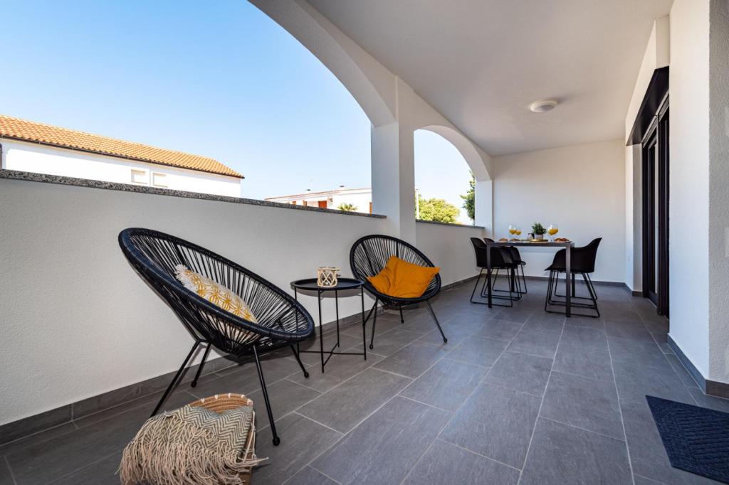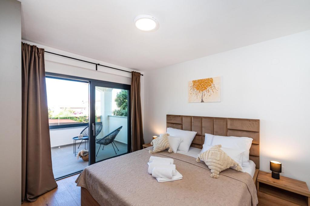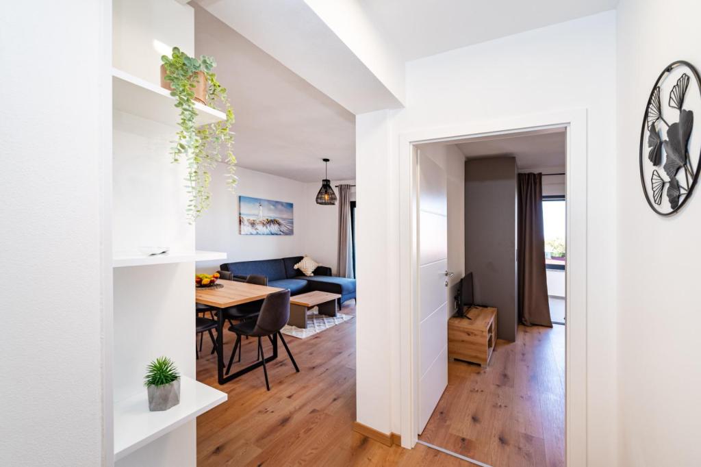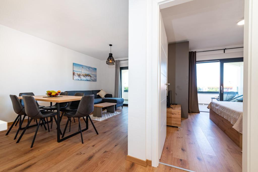 Izgrađeni 2022. godine, potpuno novi, kompletno i suvremeno opremljeni apartmani u strogom centru naselja Mandre na otoku Pagu. Udaljeni od mora 100 metara i svih potrebnih sadržaja pružaju sjajan komfor i mogućnost odmora. Na 5 minuta hoda nalaze se svi potrebni sadržaji koji gostima trebaju da bi njihovo ljetovanje bilo u potpunosti ispunjeno očekivanjima.