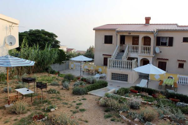 U tihom dijelu Grada Paga naša četiri apartmana pružaju za Vas i vaše prijatelje pravi obiteljski odmor. Kuća za odmor sa apartmanima nalazi se dvjestotinjak metara od mora sa osiguranim parkingom za svaki apartman. Svi naši apartmani su u cijelosti su klimatizirani, sa potpuno opremljenom kuhinjom koja sadrži pećnicu kuhalo za vodu caffe aparat te kompletno posuđe kako za pripremu tako i za posluživanje jela. Kupaone su opremljene ručnicima, sušilom za kosu. U cijenu je uračunata boravišna pristojba te posteljina u spavaćim sobama. Cjelokupni objekt nudi besplatan WI-FI pristup internetu, korištenje roštilja, osigurano spremište za bicikle, kayake… Lokacija objekta je 200-tinjak metara od plaže tako da nije potreban automobil za odlazak na plažu koja pruža sjajne uvjete za ugodno uživanje u čistom moru. Do velike gradske plaže Prosika objekt je udaljen 1500 metara. Plaža nudi čitav niz atrakcija od kafića i restorana do najma pedalina, jet skia… Cjelokupni Paški zaljev nudi preko 20 kilometara pješčanih i stjenovitih plaža što vam pruža veliki izbor. U blizini apartmana (cca 3 km) nalazi se uređena stijena za penjanje opremljena spitovima te brojne biciklističke off road staze. Meka penjača, alpinista i adrenalinskih ovisnika; Nacionalni park Paklenica je udaljen svega 60 kilometara od apartmana