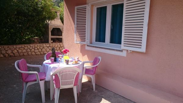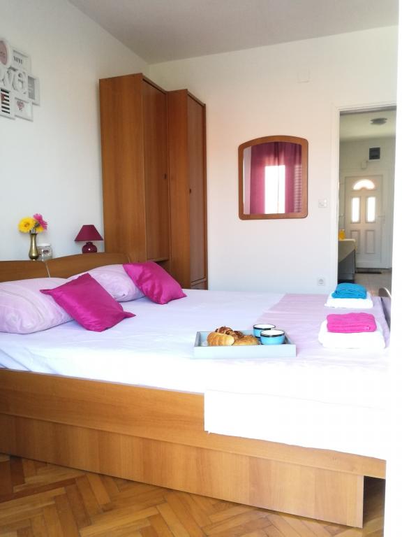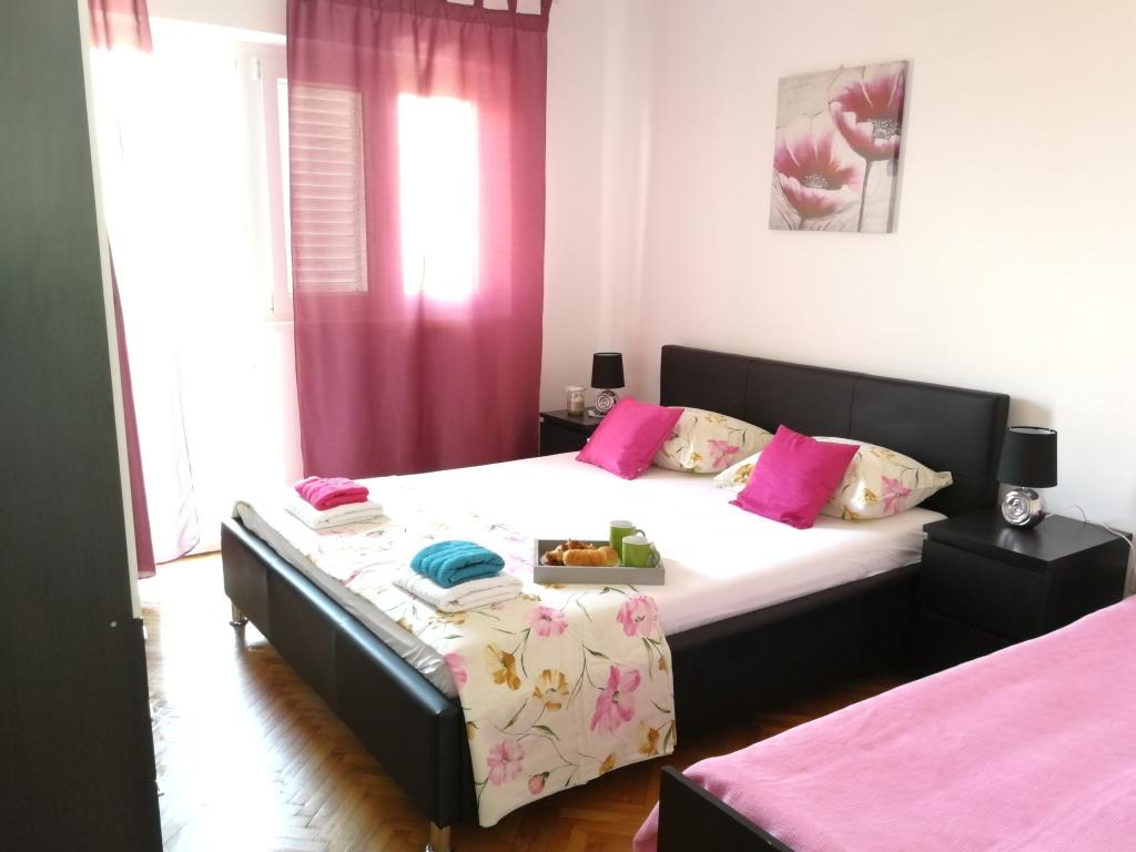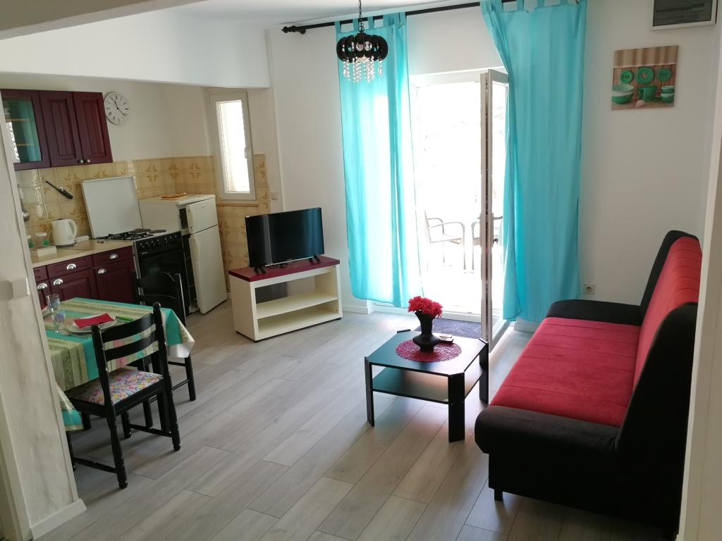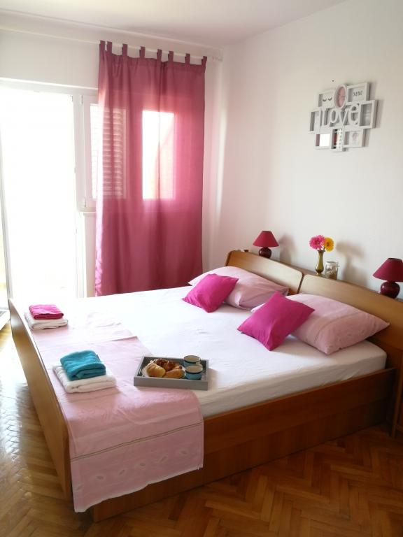 Šarmantni apartmani sa pogledom na more, smješteni 10 minuta hoda od centra grada i 100 m od glavne gradske plaže. Apartman Zvijezda na prvom katu ima dvije spavaće sobe, jedna sa bračnim krevetom i krevetom za jednu osobu, a druga sa bračnim krevetom, balkon sa pogledom na more, kupatilo, kuhinja, TV, SAT, Wi-Fi, klima i velika terasa na samom ulazu u apartman. Apartman Školjkica na prvom katu ima jednu spavaću sobu sa bračnim krevetom i krevetom za jednu osobu, balkon sa pogledom na more, kupatilo, kuhinja, TV, SAT, Wi-Fi, klima i velika terasa na ulazu u apartman. Apartman Čipka je u prizemlju kuće ima jednu spavaću sobu sa bračnim krevetom i krevetom za jednu osobu, dnevni boravak sa sofom na razvlačenje, kupatilo, kuhinja, TV, SAT, Wi-Fi, klima.