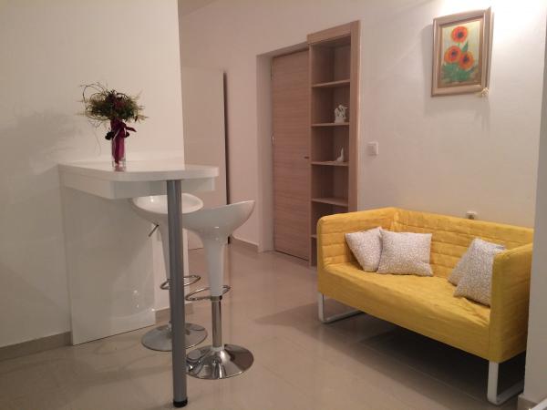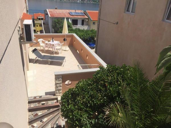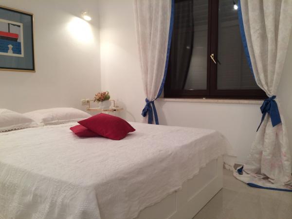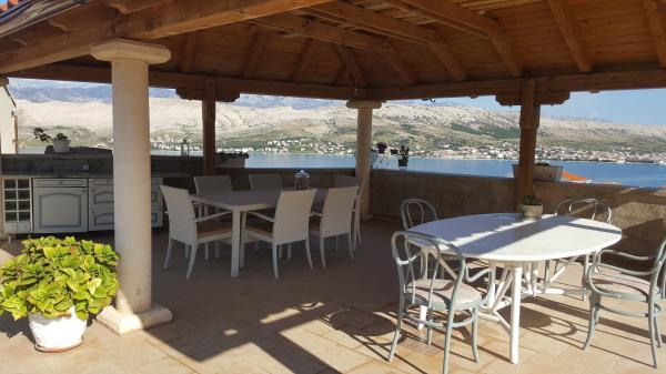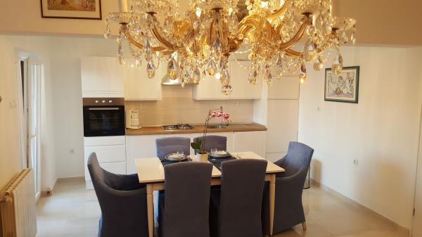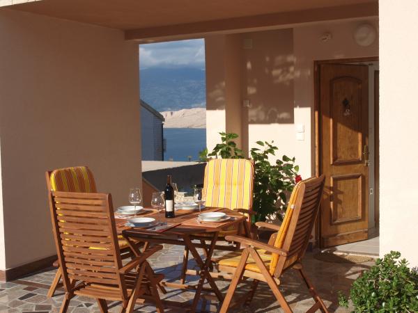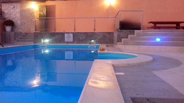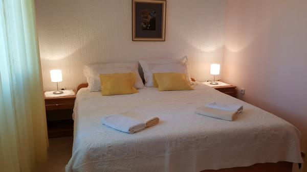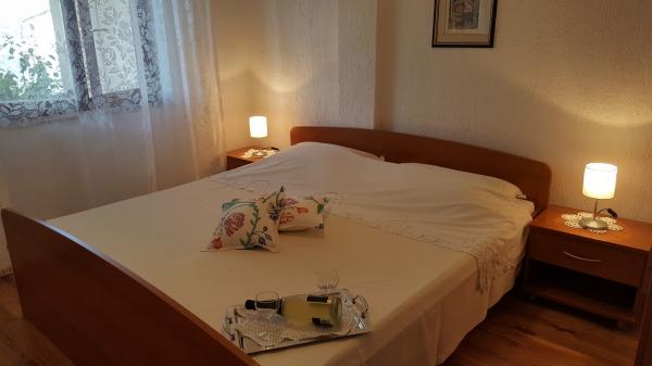 Naša obiteljska kuća je smještena u blizini pješčanih plaža, udaljena 20 minuta od plaže Zrče. Nudimo 5 komfornih, novouređenih apartmana, sa velikim terasama koje imaju pogled na more. Klima na upit. Naši gosti mogu koristiti 2 roštilja, parkiralište za auto, vez za čamce, natkrivenu sjenicu za zajedničko druženje, bazen sa ležaljkama koji ima panoramski pogled na grad i cijelu uvalu, prostor za igru djece. Gratis piće dobrodošlice: čašu vina, sok ili domaća rakija.