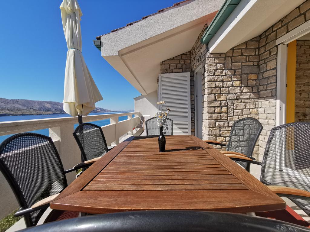 DIREKTNO NA MORU S POGLEDOM KOJI OSVAJA Smješteni u mirnom predjelu Bašaca, u Pagu, samo 10 minuta hoda udaljeni od centra grada, direktno na moru s pješčanošljunčanom plažom, pružaju idealni odmor za goste koji traže mir i odmak od masovnog turizma. Nudimo prostrane apartmane za 4 do 8 osoba smještanih u 2 kuće. Prostrane terase nude prekrasan pogled na more i pozivaju na uživanje u zalasku sunca i večeri na otvorenom. Oprema svih naših apartamana: posuđe kuhinjske krpe kuhinjska ploča (kuhalo) pećnica perilica za suđe hladnjak s odvojenom ledenicom klima uređaj LCD TV s hrvatskim zemaljskim i stranim SAT-TV programima kuhalo za vodu aparat za filter kavu Wi-Fi DSL Internet parkirno mjesto ležaljka za terasu sušilo za kosu suncobran posteljina ručnici Na raspolaganju našim gostima: za bebe: stolica za hranjenje i krevetić perilica rublja glačalo sa stolom za glačanje usisavač prašine motorni čamci mjesto za čamac u moru (bova) kajaci bicikli vrtna terasa s roštiljem vrtni tuševi