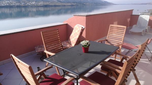 Turistička pristojba je uključena u cijenu.Apartmani s čamcem: Naši gosti imaju mogućnost koristiti čamac za čitavo vrijeme svog boravka. Pružamo mogucnost spajanja na Internet bespatno putem WiFi VDSL-a. Za naše goste, bicikli, kako za odrasle tako i za djecu stoje besplatno na raspolaganju za istraživanje grada i otoka. Naši kajaci su idealni za upoznavanje paške uvale s morske strane. Jedan dan u tjednu naši gosti mogu besplatno uživati u vožnji malim motornim čamcem i otkrivati skrivene uvale otoka Paga. Za najmlađe goste, tu su krevetić i stolica za hranjenje beba.