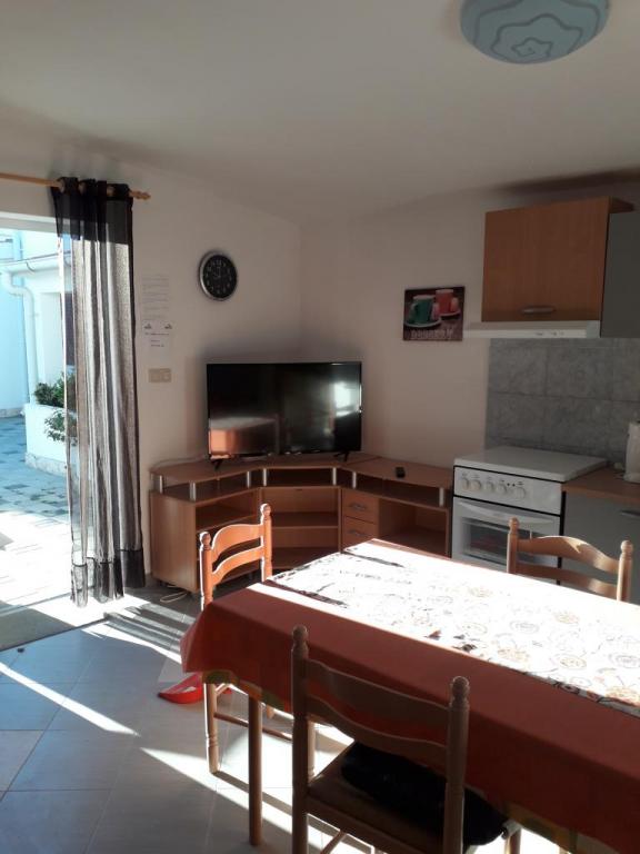Apartmani se nalaze u gradu Pagu u naselju od 30 met. od plaže. U blizini se nalaze trgovina. pekara, restoran, hotel. Plaža je odmah preko spuštate se stepenicama. Pjeskovita i uredena čista i lijepa plaža. Plaže su sve jedna di druge pa tako i velika gradska plaža sa sadržajima je u blizini. Apartmani su opremljeni sa posuđem, posteljinom. Svaki apartman ima svoj ulaz i svoju terasu. Wifi, TV, klima, roštilj, parking. Pranje rublja u perilici je besplatno i na upit možete koristit u praoni. Kućni ljubimci dozvoljeni bez plaćanja. Gel za tuširanje toaletni pap. sapun. , fen za kosu, pegla, ručnici. Dvoriste je ograđeno sa kovanom željez. ogradom radi sigurnosti djece. Pušenje je poželjno na terasi. DOBRODOŠLI