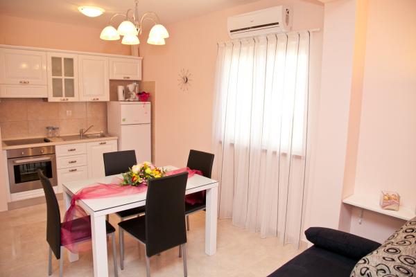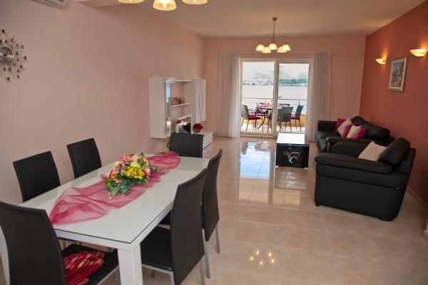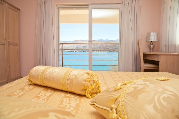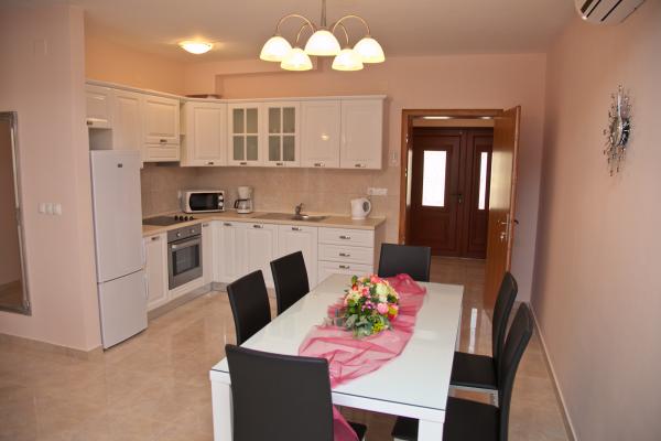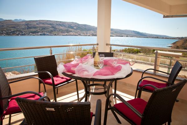 Kompletno opremljeni apartmani, smješteni prvi red do mora na Pagu - grad Pag predio Vodice. Izgradjeni 2012 godine prvi put se iznajmljuju. Apartman se nalazi prvi red do mora, ispred kuce je plaza. Jedan Apartman ima 120m2, sastoji se od 2 dvokrevetne sobe (jedna ima pogled na more), 2 kupatila sa perilicom, plus 1 wc, kompletno opremljena kuhinja sa perilicom za sudje, blagavaona, plus ćajna kuhinja, terase sa pogledom na more. Drugi apartman ima 60m2 sastoji se od 1 dvokrevetne sobe, kuhinje/blagavaone, kupatila, terase sa pogledom na more. Oba apartman su klimitizirana, Plaža je ispred kuće, Parking osiguran. Apartmani su 15min. hoda od centra -