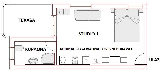 Studio je čist i uredan. Sve što mi je trebalo u kuhinji bilo je u opremi. Vrlo ljubazni domaćini. Blizu je mora i centra Paga za večernji izlazak. Garsonjera bi trebala biti 2-sobna, ali ako netko ide s djetetom može se i rezervirati bez problema. Toplo bih preporučio.
