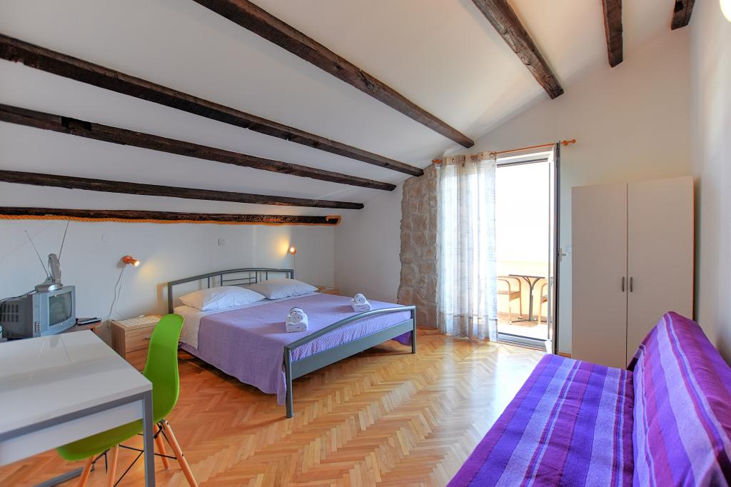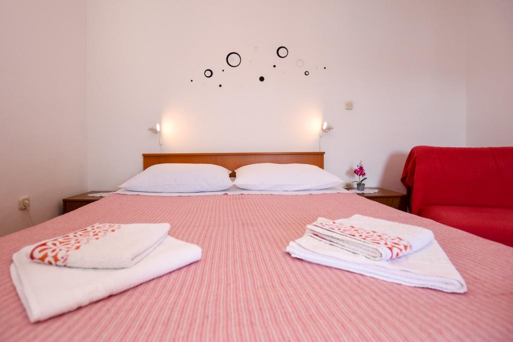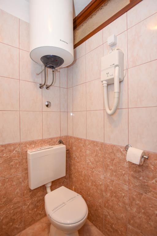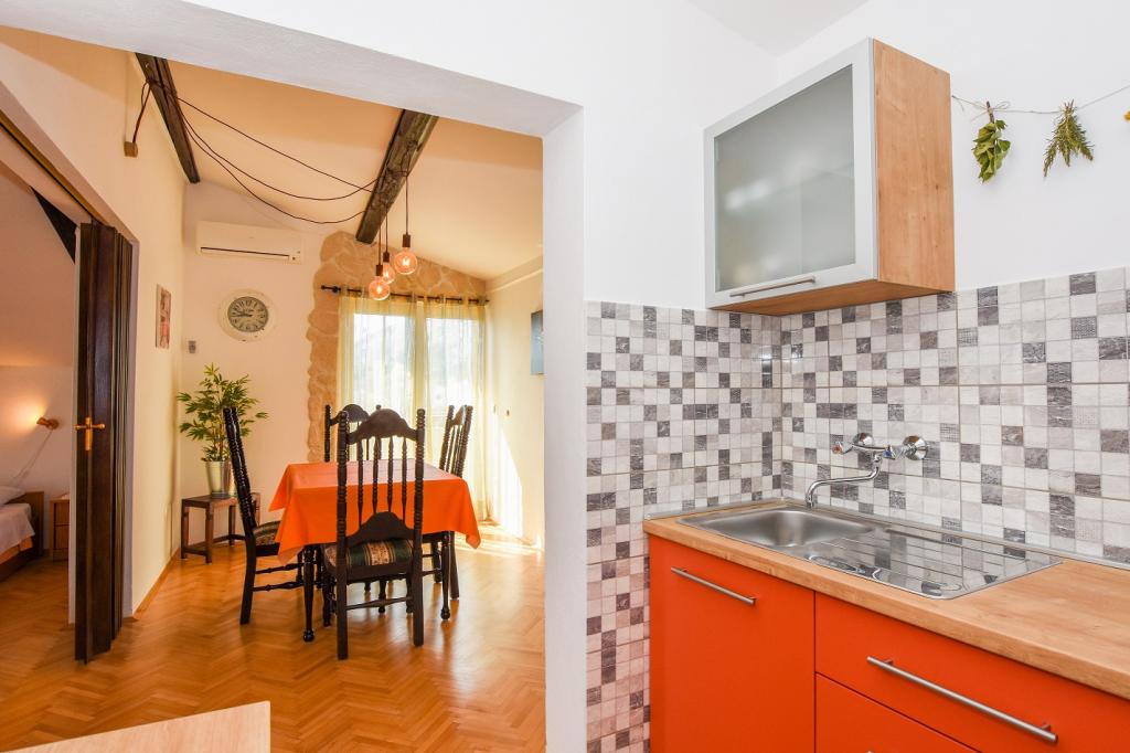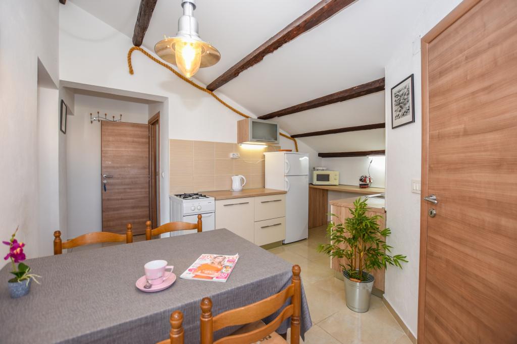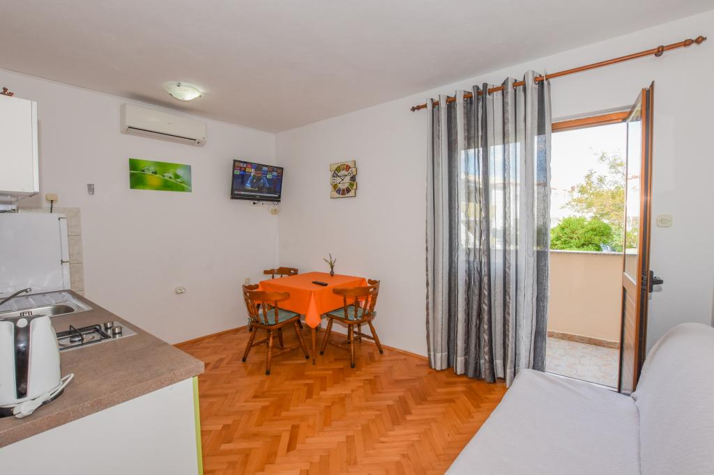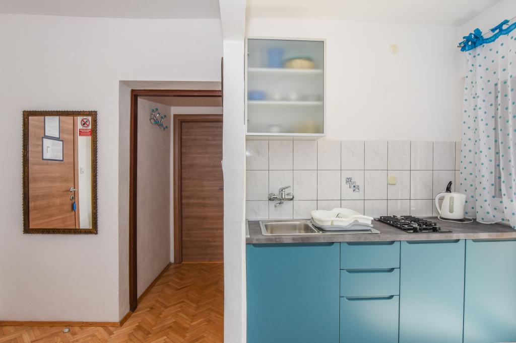 Vrlo dobar smještaj. Bili smo u A3 s dva balkona. Oprema kuhinje i kupaonice je dovoljna. Čisto, čak besprijekorno. Gospođa Dominika je od pomoći u svemu. Čak nam je omogućila pristup svojoj garaži za naših 5 SUP dasaka. Odlično mjesto za roštilj. Preporučujemo.