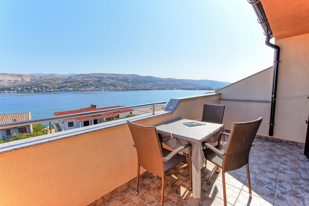 Ostali smo u app.A4 10 dana, sve je bilo sjajno! Uređeni prostori, opremljeni svime potrebnim i s dva strateška balkona s pogledom na veličanstveni Paški zaljev. Za one koji žele mir ali i lak pristup staroj gradskoj jezgri i svim ostalim plažama toplo preporučam!