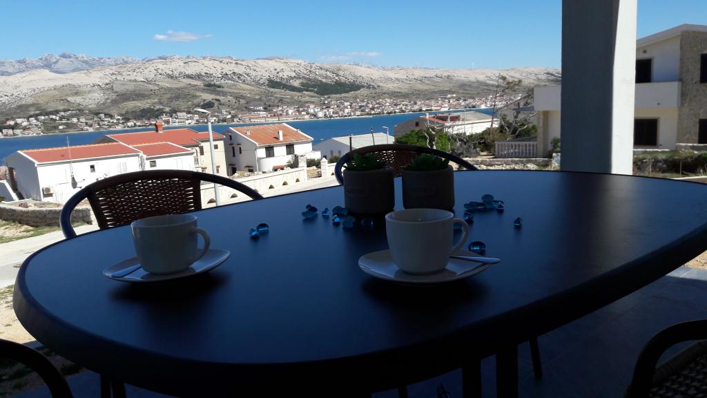 Kompletno i suvremeno opremljen apartman u mirnom predjelu Paga sa predivnim pogledom na more. Objekt se nalazi na 1800 m od centra i 200m od plaze i mora. U Pagu ćete naći lijepih i lako dostupnih kupališta preporučujemo obiteljima s djecom. Šljunčane plaže su dobro opremljeni s dodatnim sadržajima za zabavu i rekreaciju.Ako ste u potrazi za zabavom, tu su mnogi kafići, i restorani. To je idealno mjesto za miran odmor bez ljetnih gužvi.