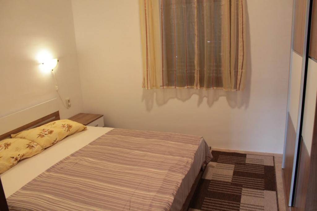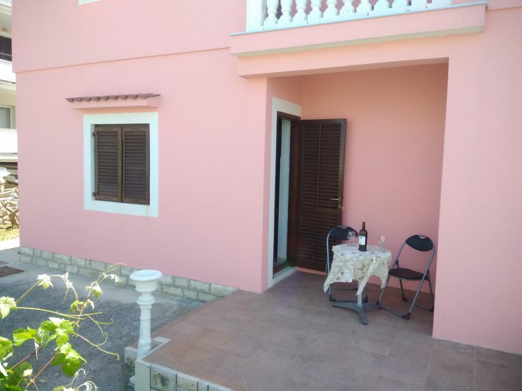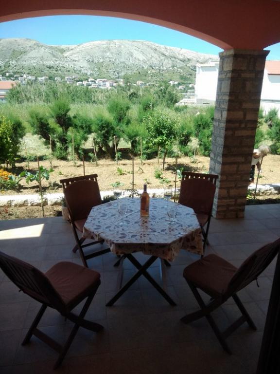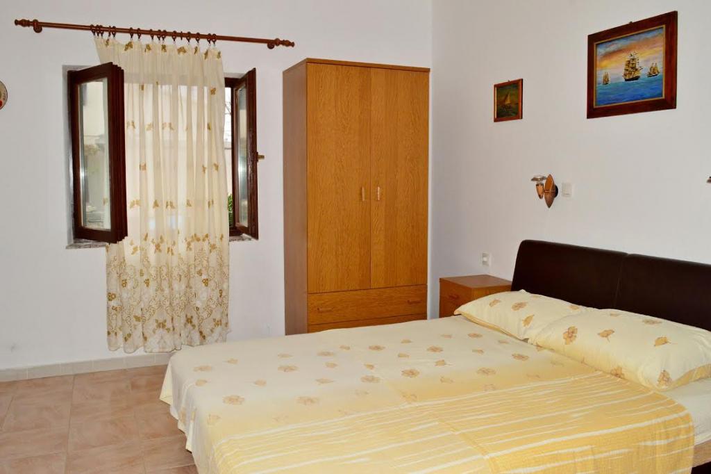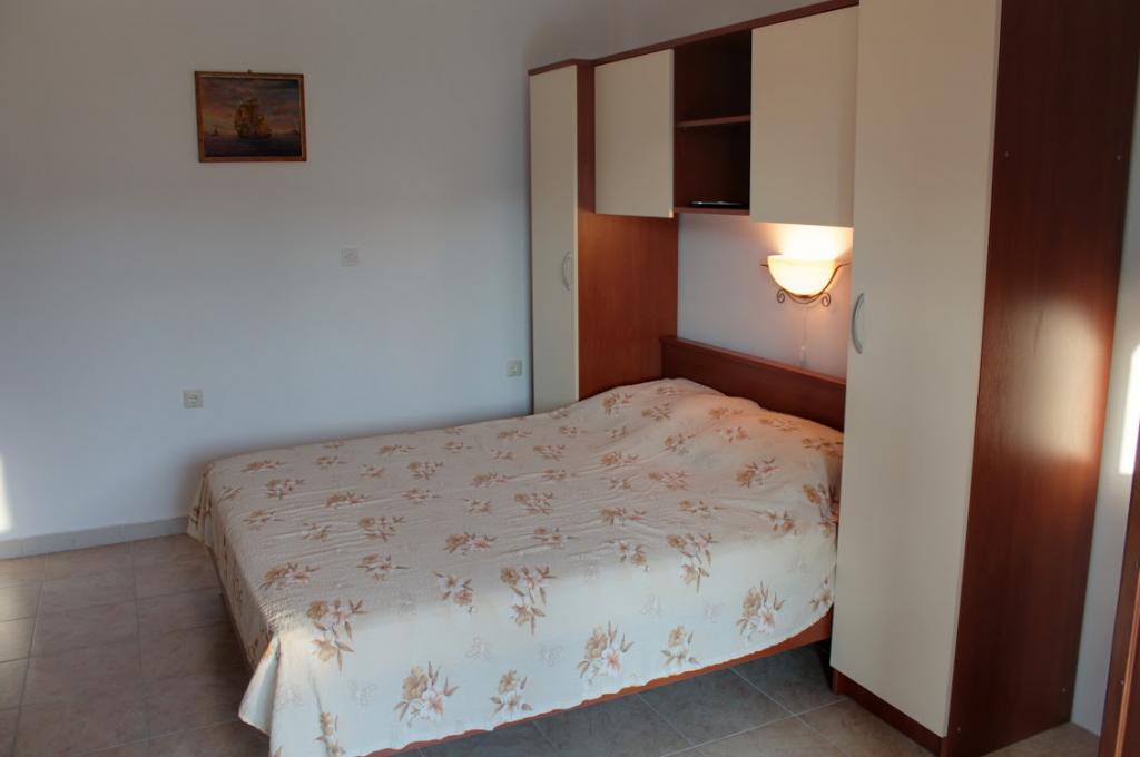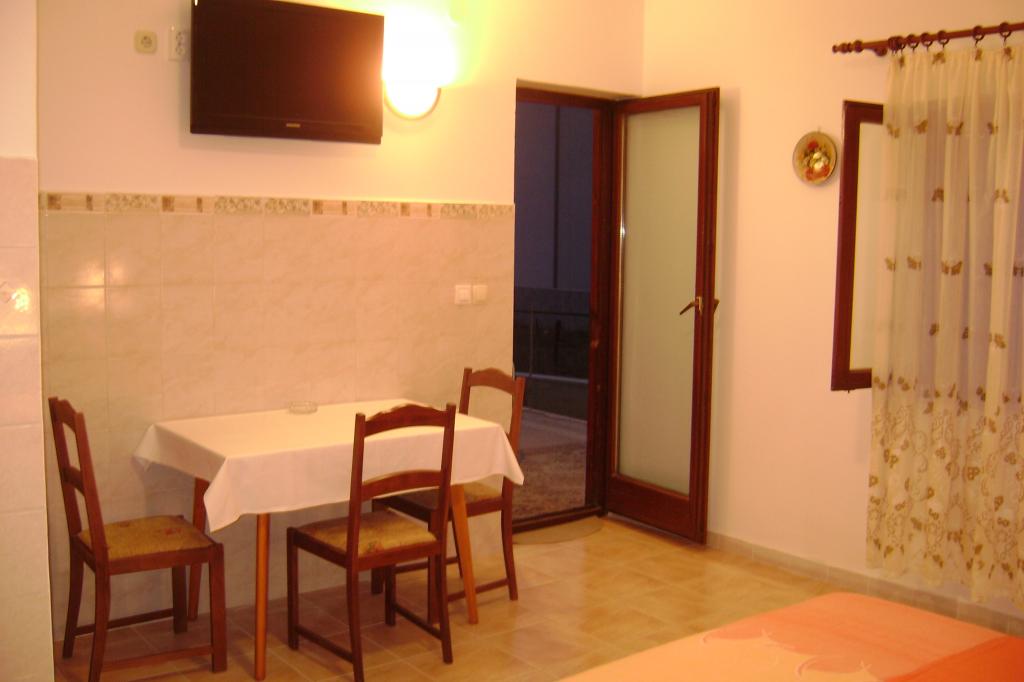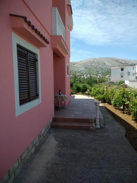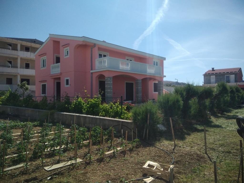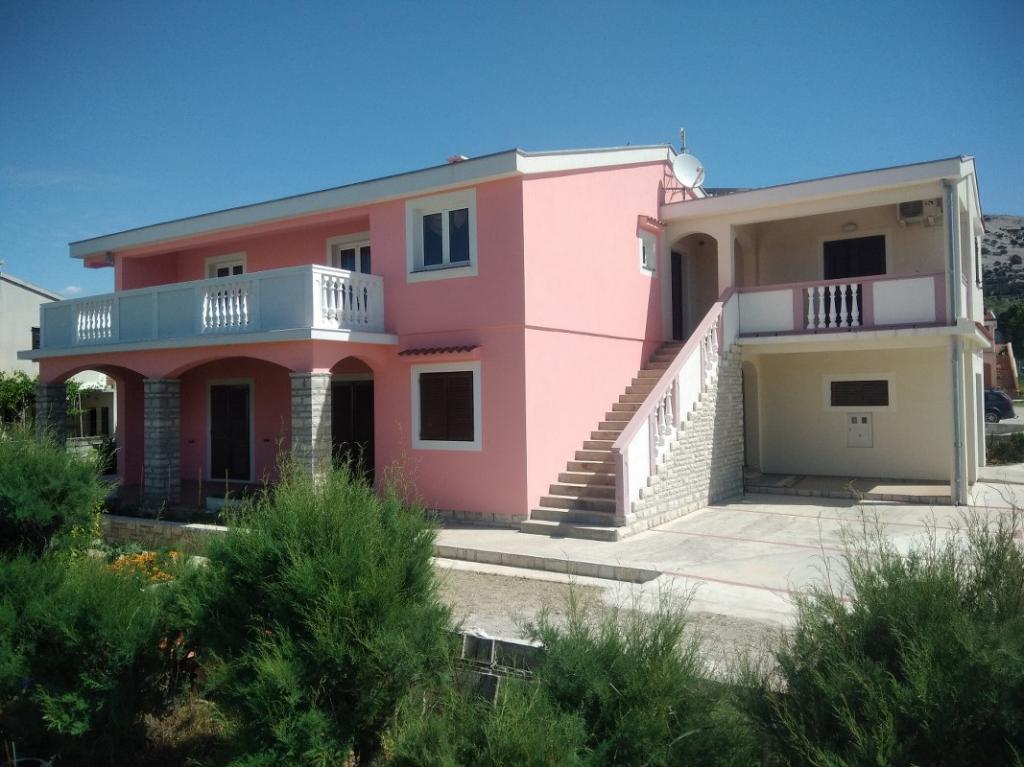 Tri studio apartmana: sobe sa kuhinjom, kupaonom i veliki apartman za 4 osobe ( 2+2) nalaze se u gradu Pagu. Dva studio apartmana nalaze se u prizemlju i jedan studio apartman na katu velike obiteljske kuće. Smješteni 10 minuta hoda od glavnog gradskog trga i petnajst minuta od glavne gradske plaže. Apartmani se nalaze na vrlo mirnom i tihom mjestu okruženi vrtovima, prirodom i zelenilom prikladnim boravkom za goste koji su željni mira i tišine. Apartmani su veličine 30 četvornih metara smještenog kapaciteta za dvije osobe, imaju jednu sobu, kuhinju i kupaonicu sa tuš kabinom, ispred ulaza u apartman nalaze se male terase. Apartmani su opremljeni tv, satelitom i priključkom na internet, apartman na katu ima klimu uređaj. U prizemlju velike obiteljske kuće nalazi se apartman veličine 60 četvornih metara sa jednom spavaćom sobom, velikom kuhinjom, velikim dnevnim boravkom sa bračnim krevetom smještenog kapaciteta za četri osobe (2+2). Ispred apartmana se nalazi mala terasa.