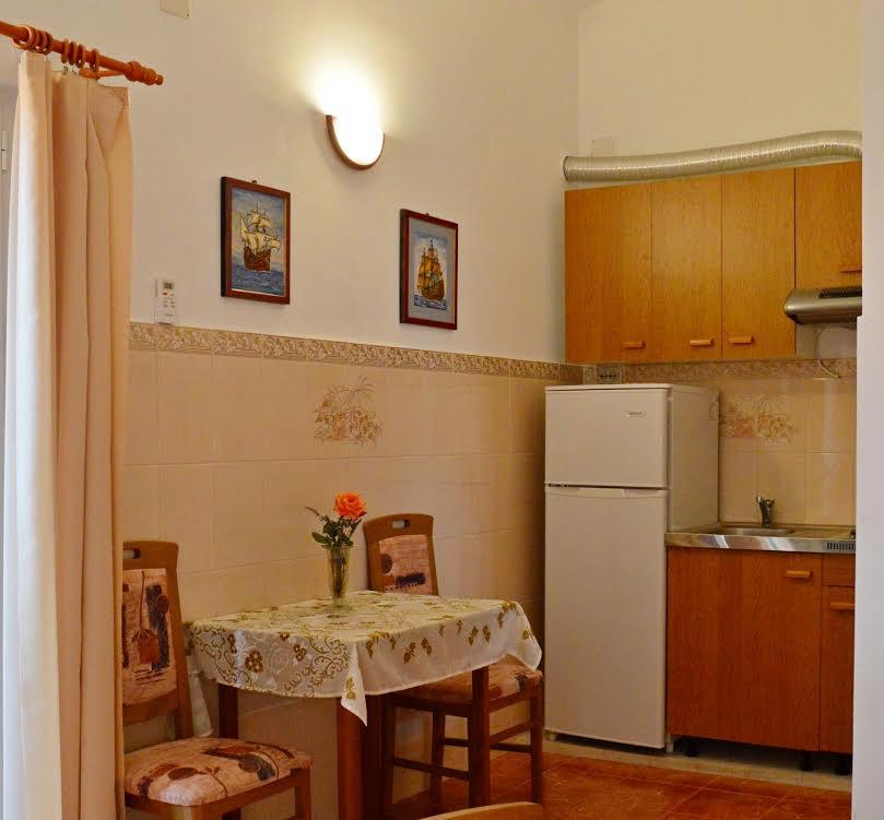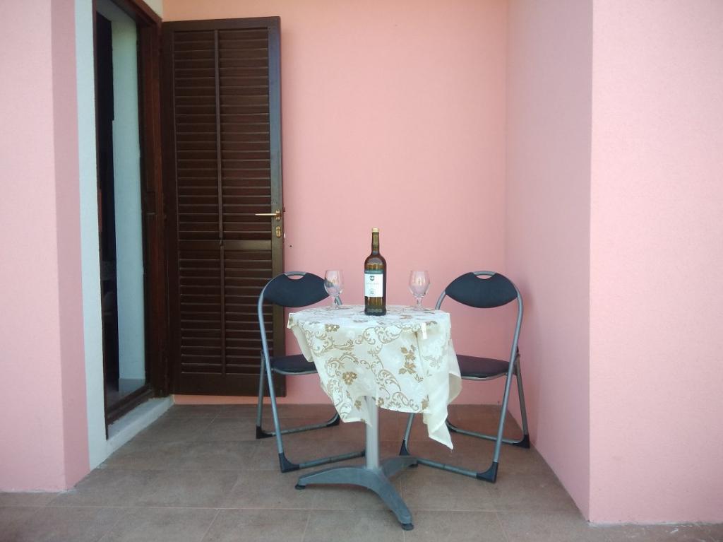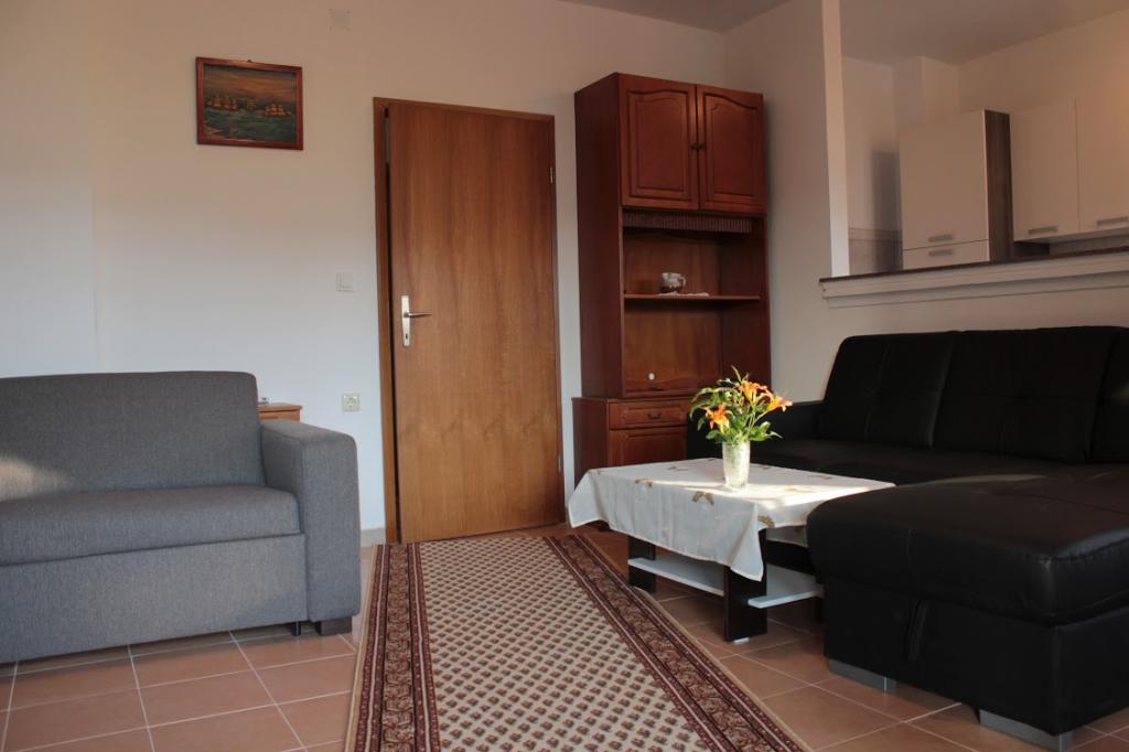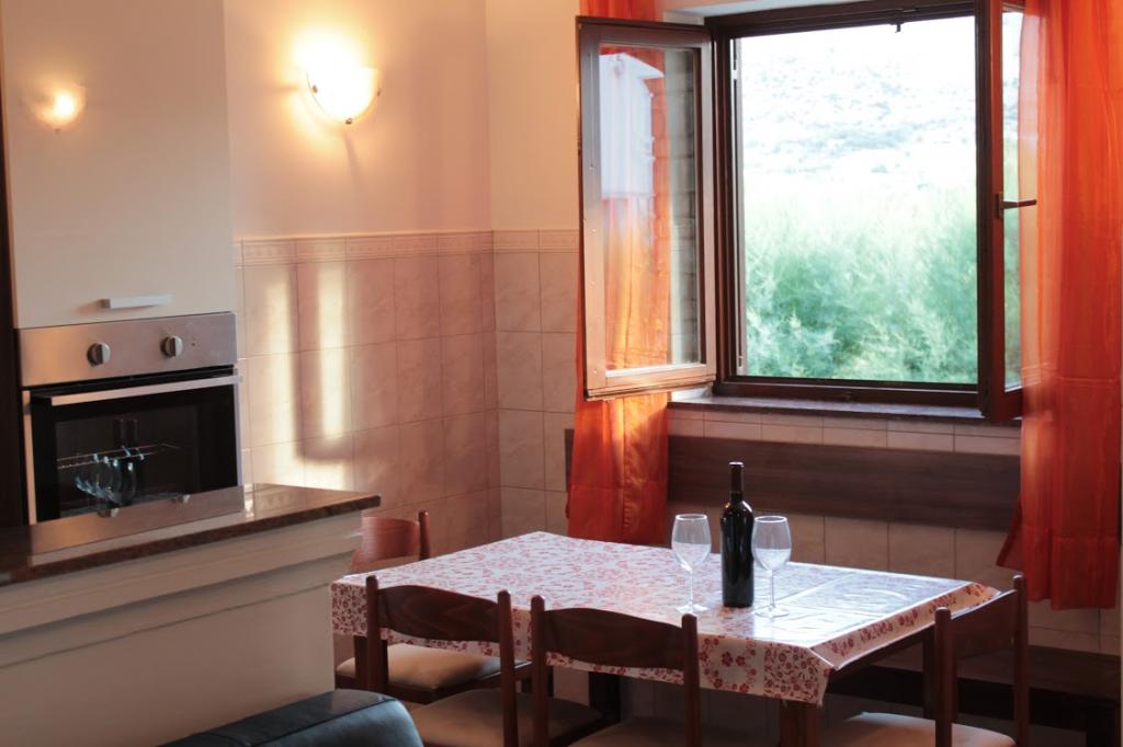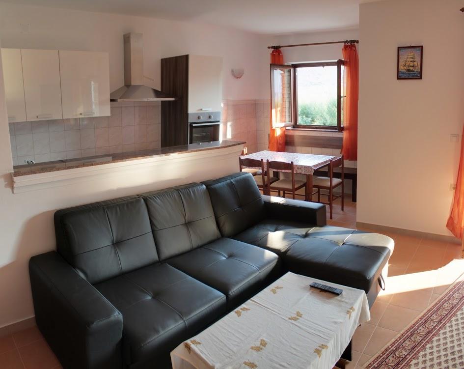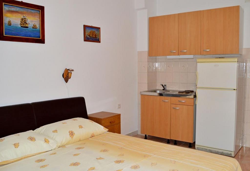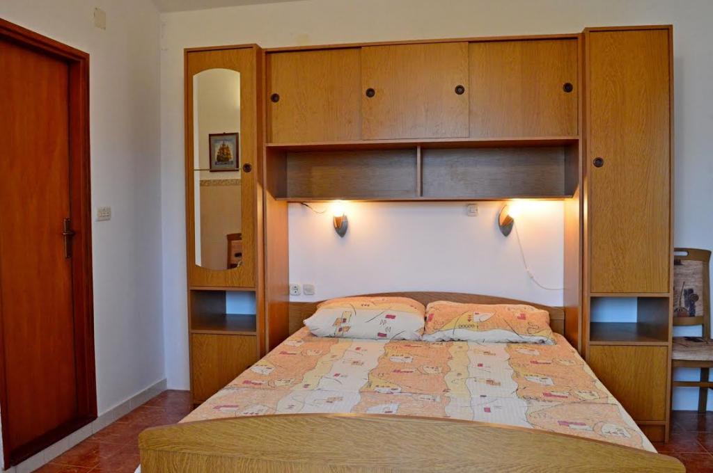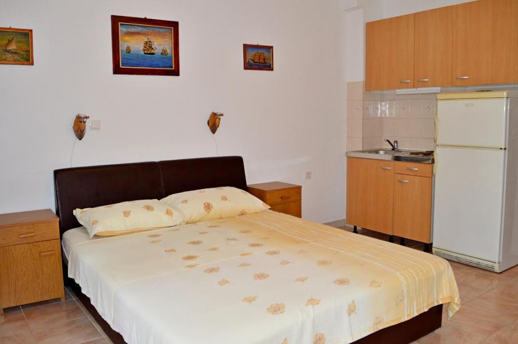 Tri studio apartmana: sobe sa kuhinjom, kupaonom i veliki apartman za 4 osobe ( 2+2) nalaze se u gradu Pagu. Dva studio apartmana nalaze se u prizemlju i jedan studio apartman na katu velike obiteljske kuće. Smješteni 10 minuta hoda od glavnog gradskog trga i petnajst minuta od glavne gradske plaže. Apartmani se nalaze na vrlo mirnom i tihom mjestu okruženi vrtovima, prirodom i zelenilom prikladnim boravkom za goste koji su željni mira i tišine. Apartmani su veličine 30 četvornih metara smještenog kapaciteta za dvije osobe, imaju jednu sobu, kuhinju i kupaonicu sa tuš kabinom, ispred ulaza u apartman nalaze se male terase. Apartmani su opremljeni tv, satelitom i priključkom na internet, apartman na katu ima klimu uređaj. U prizemlju velike obiteljske kuće nalazi se apartman veličine 60 četvornih metara sa jednom spavaćom sobom, velikom kuhinjom, velikim dnevnim boravkom sa bračnim krevetom smještenog kapaciteta za četri osobe (2+2). Ispred apartmana se nalazi mala terasa.