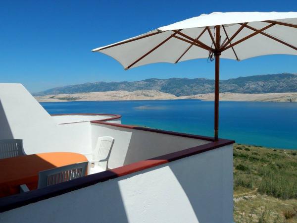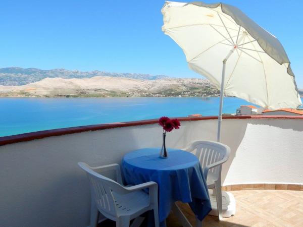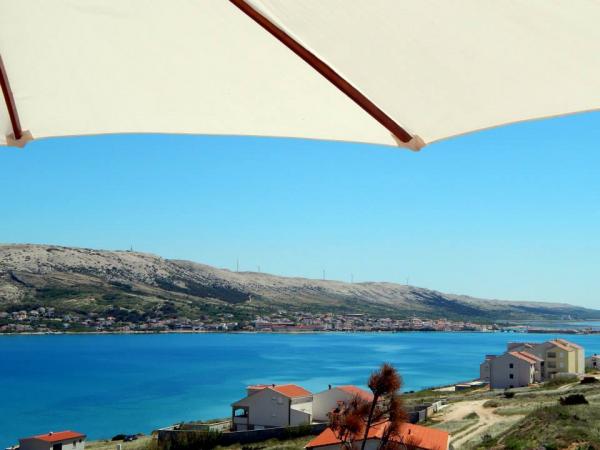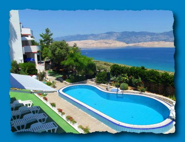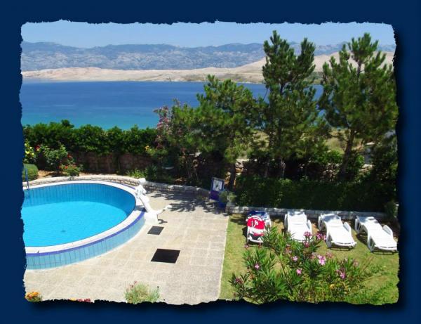 Turistička pristojba nije uključena u cijenu.Plaže: Prva plaža udaljena je 200 m od kuće. Plaža je šljunčana i pješčana s izvorima pitke vode. U našoj kući nalaze se brojne plaže, a sve su slične, savršene za djecu (Pag ima 20 km plaža)...bazen sa svim potrebnim uređajima (kišobrani, ležaljke, stolovi i stolice u vrtu, ljuljačka), dva roštilja, parkiralište. Opisi apartmana: Svi apartmani su opremljeni TV-SAT, WI FI, klima uređajem, posteljinom, kuhinjskim potrepštinama, suncobranima i stolovima na terasi, hladnjakom i ledenicom u kuhinji, mikrovalnom pećnicom, ručnicima. .