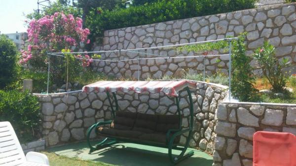 Kuća se nalazi 3 km od centra grada, u mirnom području, cca 200 m od plaže. Ima prekrasan pogled na uvalu i planine. Priroda oko naše kuće je vrlo lijepa, tako da možete šetati i uživati u njenoj ljepoti. Posebno je lijepo u proljeće i jesen, ako se želite odmoriti i opustiti od svakodnevnog života. Svi apartmani imaju pogled na more. Vrt je velik s puno cvijeća i dovoljno mjesta za zabavu i opuštanje, bazen u vrtu s tušem, stolovi i stolice, suncobrani, prostrano parkiralište s dovoljno prostora za svakoga, ljuljačke za djecu...