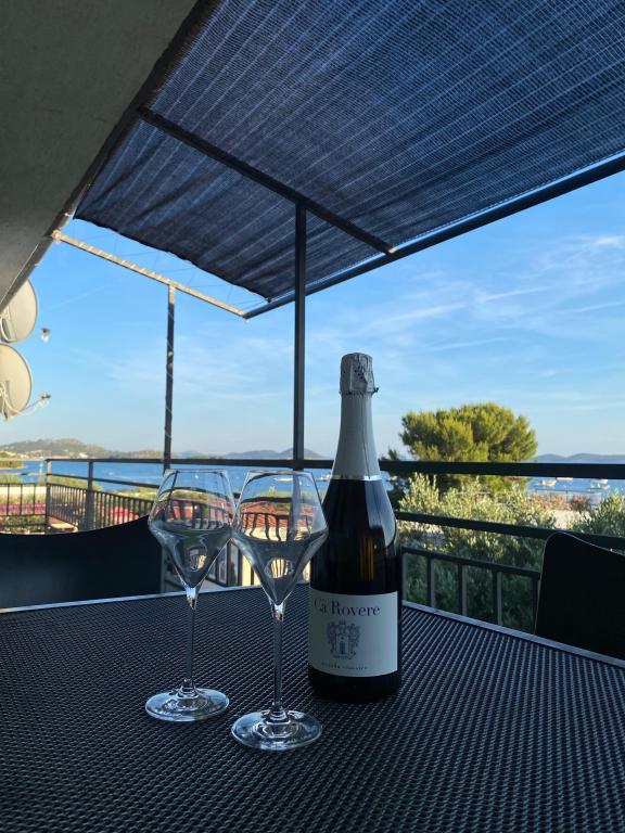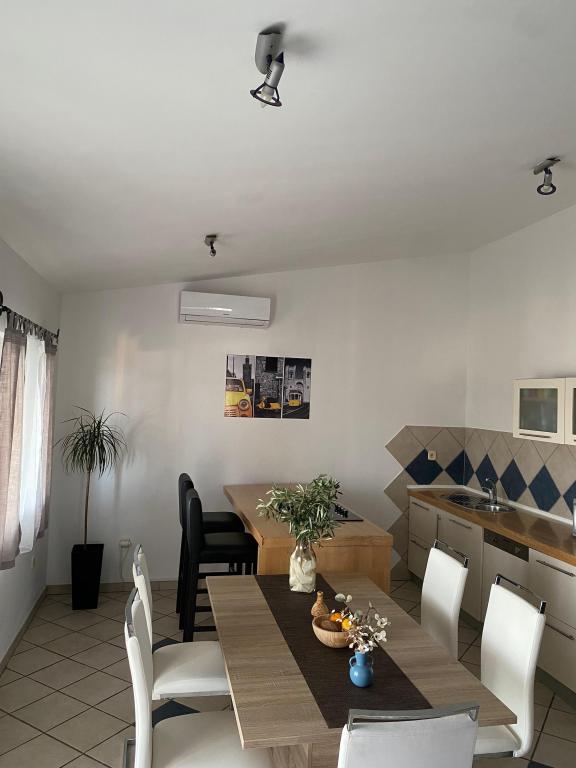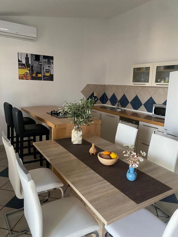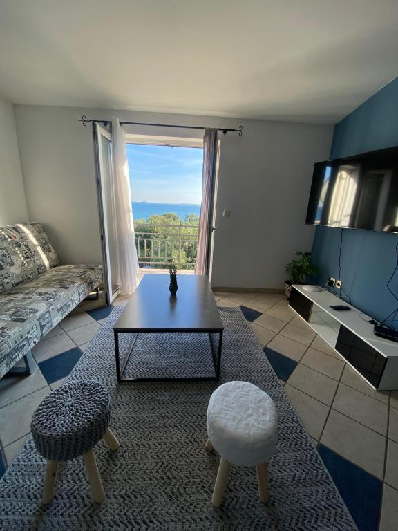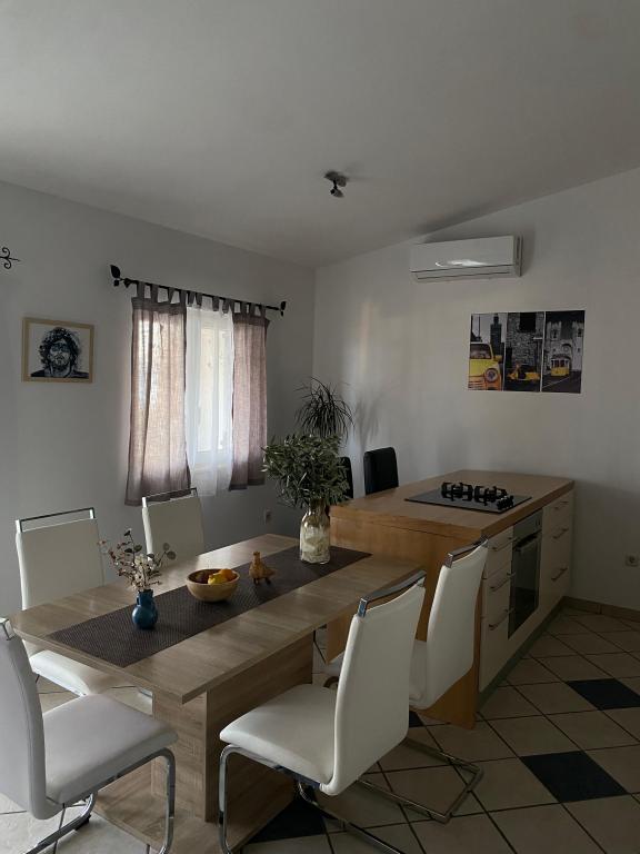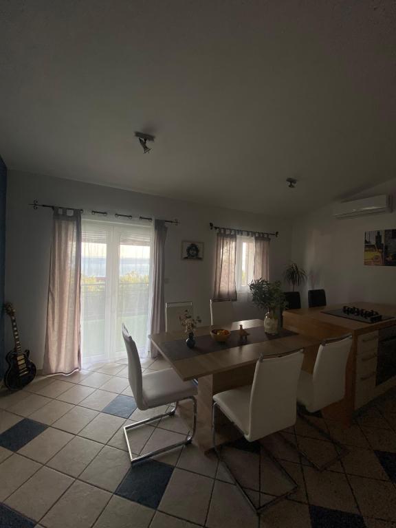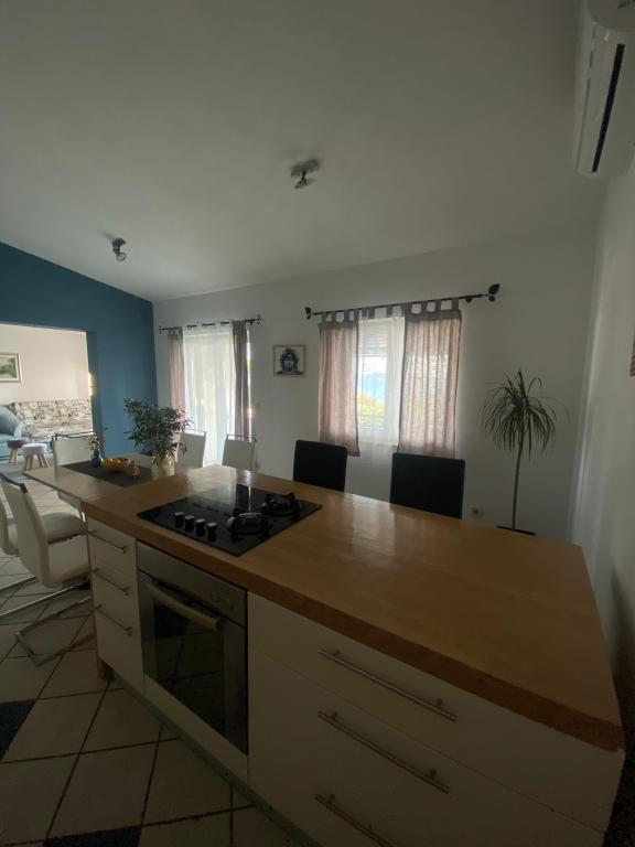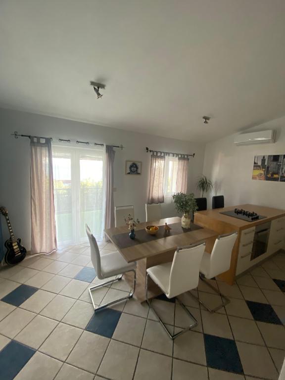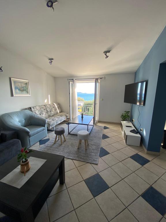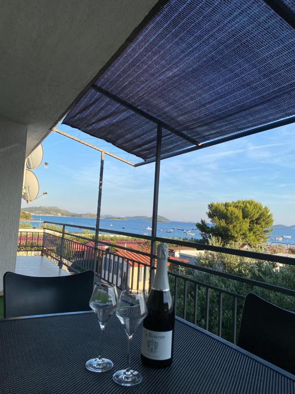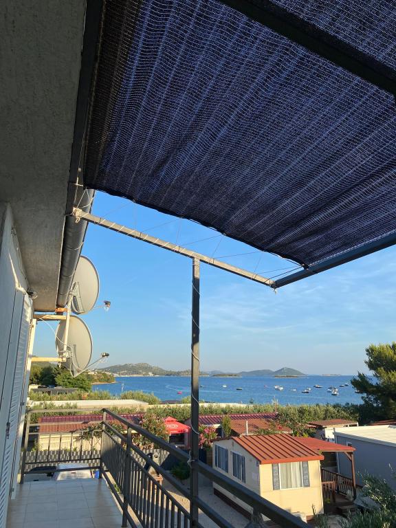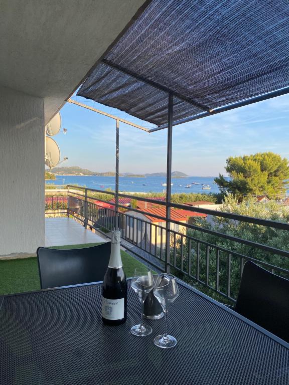 Apartman na samoj plaži nedaleko od centra mjesta sa prekrasnom prostranom terasom koja ima pogled na obližnje otoke. U neposrednoj blizini bech bar-a, pizzerije i fast food-a. Klima, wi-fi, tv, perilica posuđa i rublja samo su neke od stvari koje pruža apartman. Dvije sobe s bračnim krevetom, prostrana dnevna soba i moderna kuhinja s otokom.