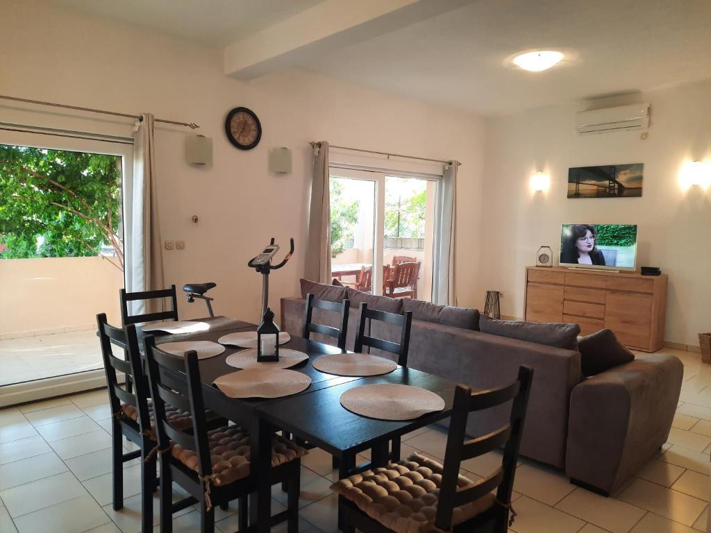Apartman nudi smještaj za ukupno 5 gostiju. Ima dvije spavaće sobe – svaka s bračnim krevetom (160x200) – te dodatni ležaj za dijete do 12 godina u dnevnom boravku. U sobama vas očekuje namještena posteljina i ručnici! Dnevni boravak je opremljen Smart TV-om s pristupom streaming servisima (poput Netflixa), a kuhinja je potpuno opremljena (hladnjak, štednjak, pećnica, kuhalo za vodu, perilica posuđa, mikrovalna, posuđe). U apartmanu se nalaze dvije kupaonice te perilica rublja.
