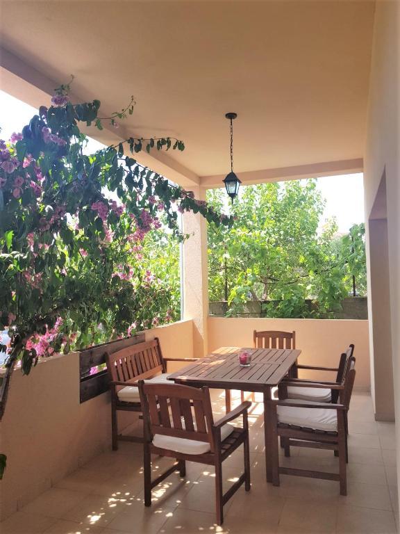 Natkrivena terasa nudi dovoljno prostora za obiteljsko druženje i svakodnevni odmor. U dvorištu kuće nalazi se privatno parkirno mjesto, dostupno gostima bez nadoplate.