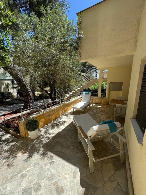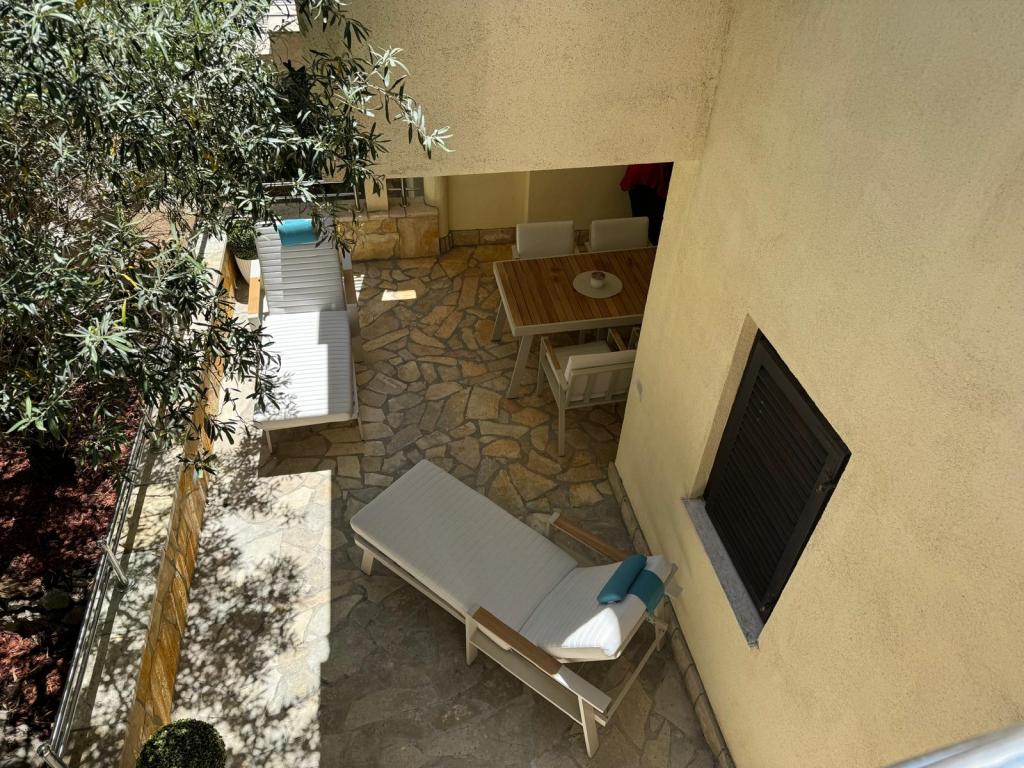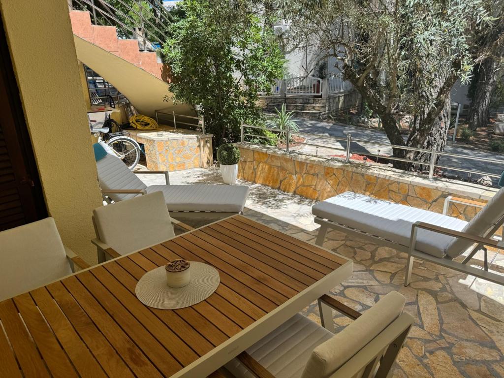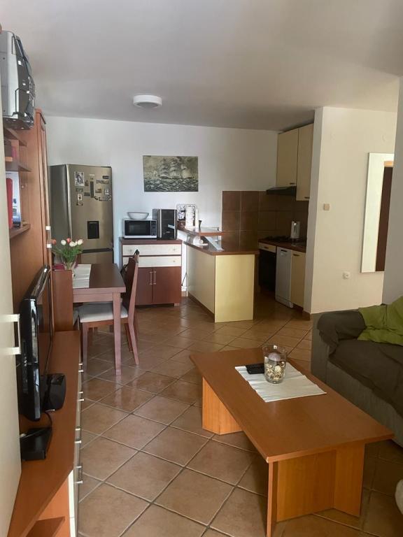 Apartman Tina smješten je u apartmanskom naselju u sklopu kampa Kozarica . Aktraktivan mali aparatman nalazi se u prizemlju sa prostarnom terasom od 20m2 okružen borovom šumom i hladom . Udaljenost od plaže je 50m. Apartman se sastoji od dnevnog boravka sa kuhinjom , dvije spavaće sobe i kupaonom. Opremljen je svim kućanskim aparatima i potrepštinama kao da ste u toplini vlastitog doma . Parkirno mjesto je osigurano . Mala oza mira, idealna za dvije odrasle osobe i dvoje djece .