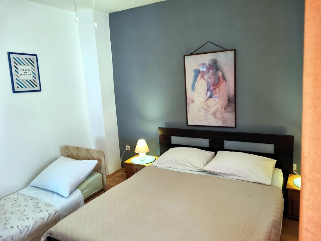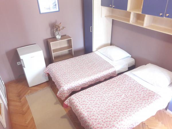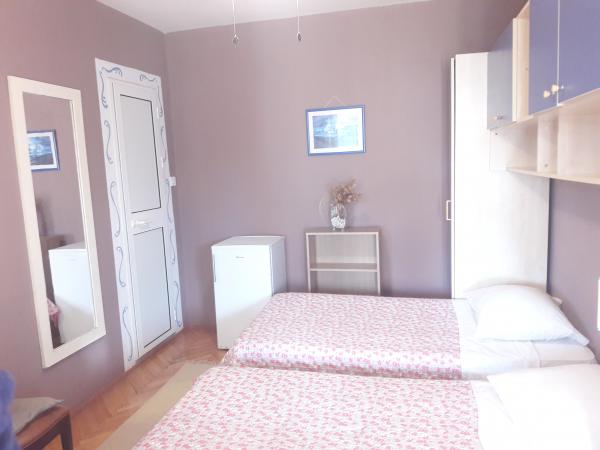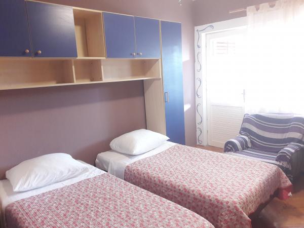Boravili smo u najvećem apartmanu, koji je bio i vise nego prostran za 4 - članu obitelj s dvoje male djece. Apartman je bio čist i uredan, kreveti udobni s nadmadracima vrlo udobnima za spavanje, ima dovoljno ormarića i prostora za odlaganje stvari. Kuca je u centru tako da su svi sadržaji nadohvat ruke (trgovina, pekara, restorani) i par minuta lagane šetnje udaljena od mora. U apartmanu smo imali sve sto nam je bilo potrebno, a kuhinja je opremljena čak i perilicom suđa i pećnicom. Vrlo je dobra izolacija pa nismo uopće čuli druge goste iako su i drugi apartmani bili puni. Domaćica je jako draga, ljubazna, nenametljiva, ali uvijek pri ruci kada zatreba. Dolazimo i sljedeće godine.