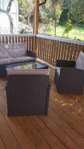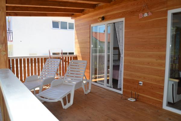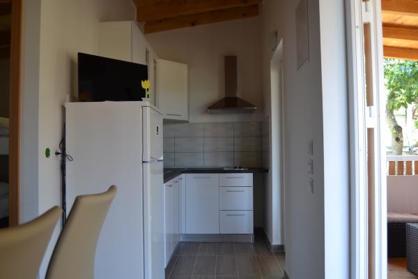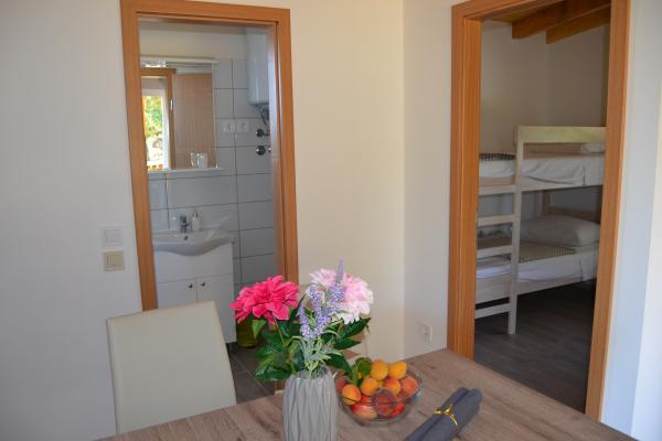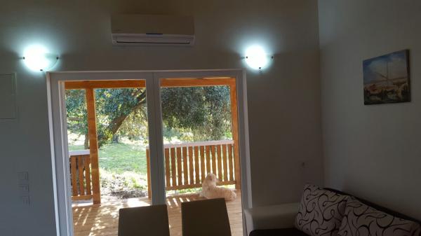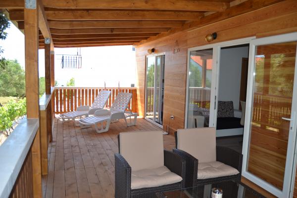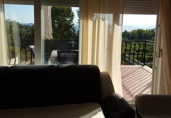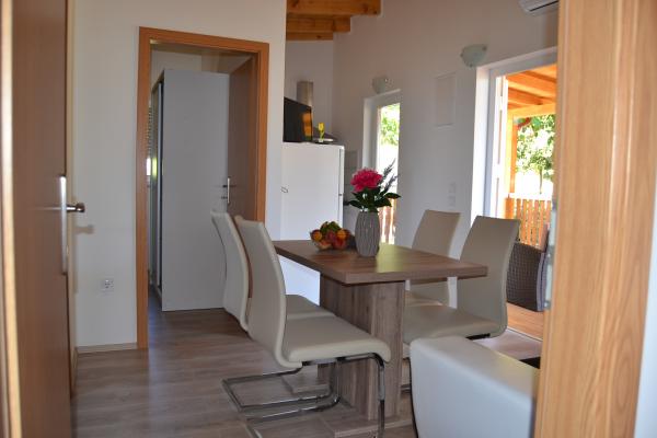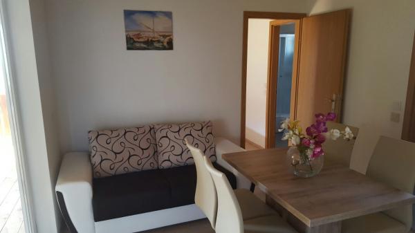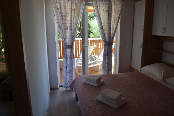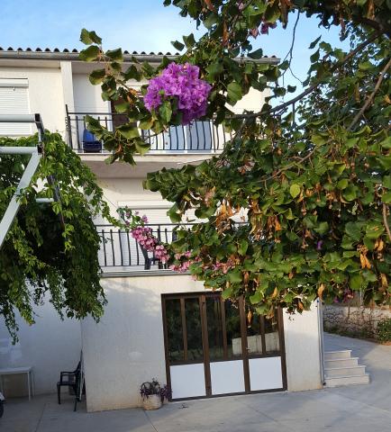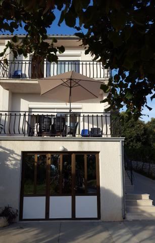 Zelenilo, blaga klima, čisti zrak, prekrasan pogled na more, to je nešto što će svakoga privući u ovaj kraj. Novoizgrađena dva apartmana smještena na mirnoj lokaciji. Nudimo Vam dvokrevetnu sobu sa kupaonicom, sobu sa dva jednokrevetna ležaja koja se po potrebi mogu spojiti, kuhinju sa blagovaonicom i dvosjedom te kupaonica. Na prekrasnom prostranoj terasi nalazi se garnitura za 4 osobe i dvije ležajke. Želite li provesti nezaboravan odmor, a želite i povesti i svog psa mi Vam nudimo tu mogućnost. Svi su dobrodošli u naše male, prekrasne, novoizgrađene apartmane. Klima uređaj, posteljina, ručnici i WiFi uključeni u cijenu.