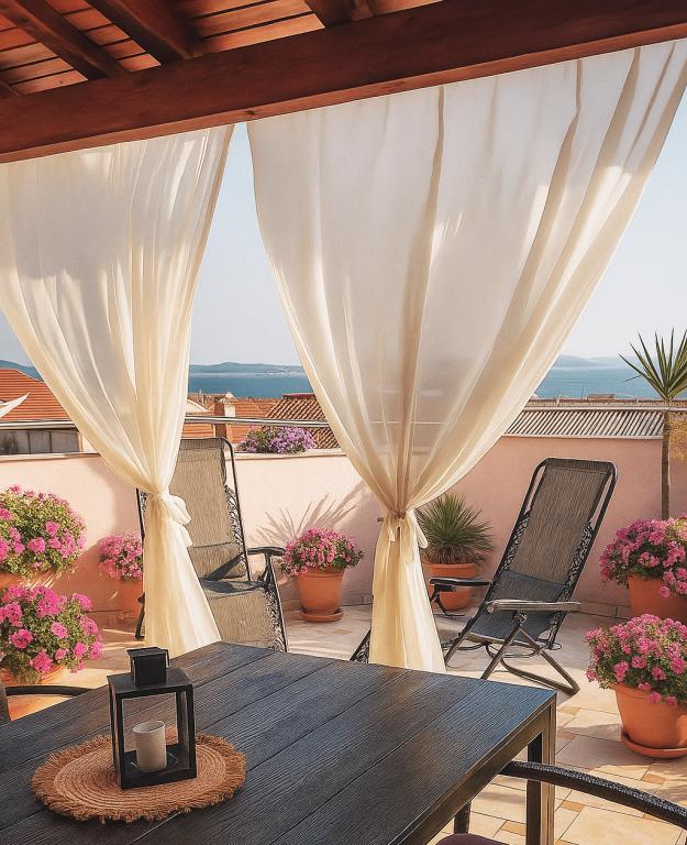 Bili smo na vrlo lijepom mjestu krajem lipnja 2021. Vrlo simpatična domaćica. Dobrodošla iznenađenja i na kraju u obliku vina i nečeg slatkog za djecu. Apartmani 120 m velika zasjenjena terasa. Vrlo čisto. Mir i tišina, nedaleko od centra. Na putu do plaže sve trgovine su nadohvat ruke. Dvije kupaonice izgledaju bolje poput slike. Sve što vam treba u kuhinji. Veliki hladnjak. Sjenoviti parking. Preporučam.