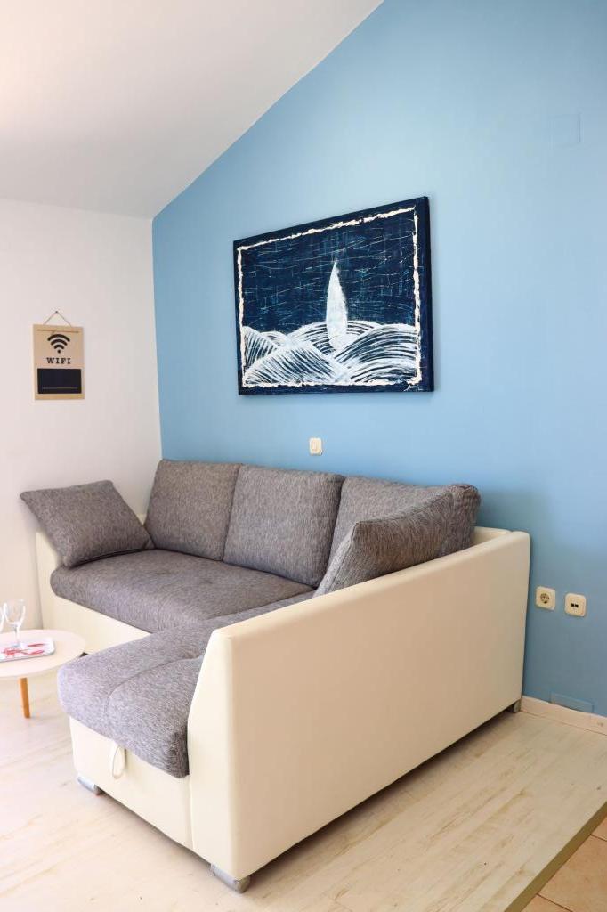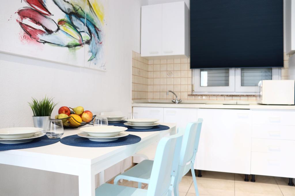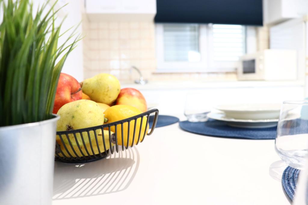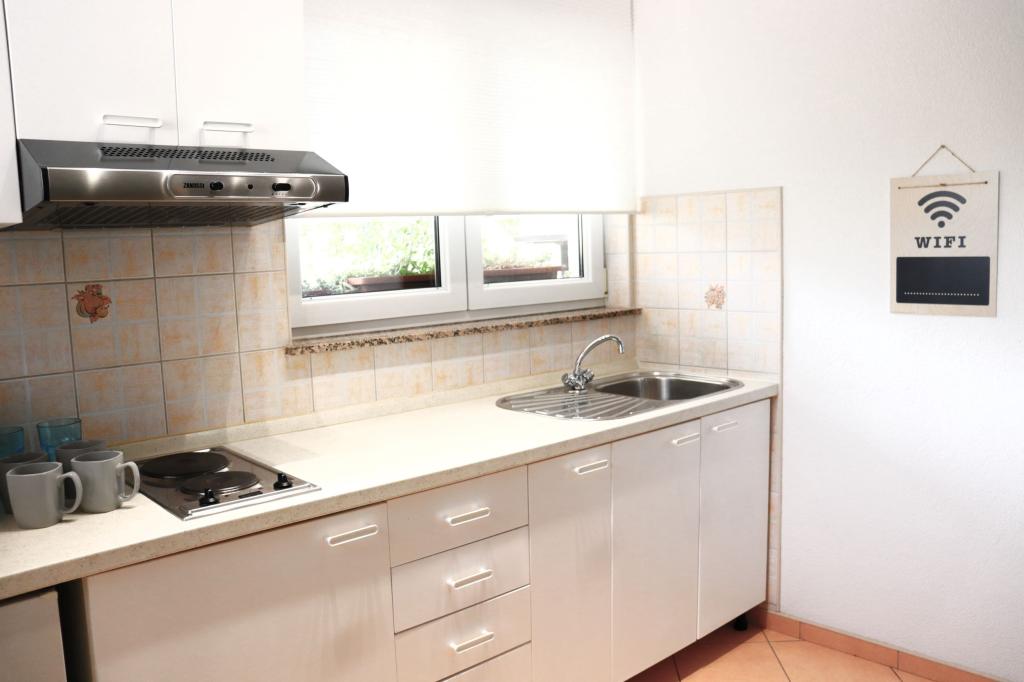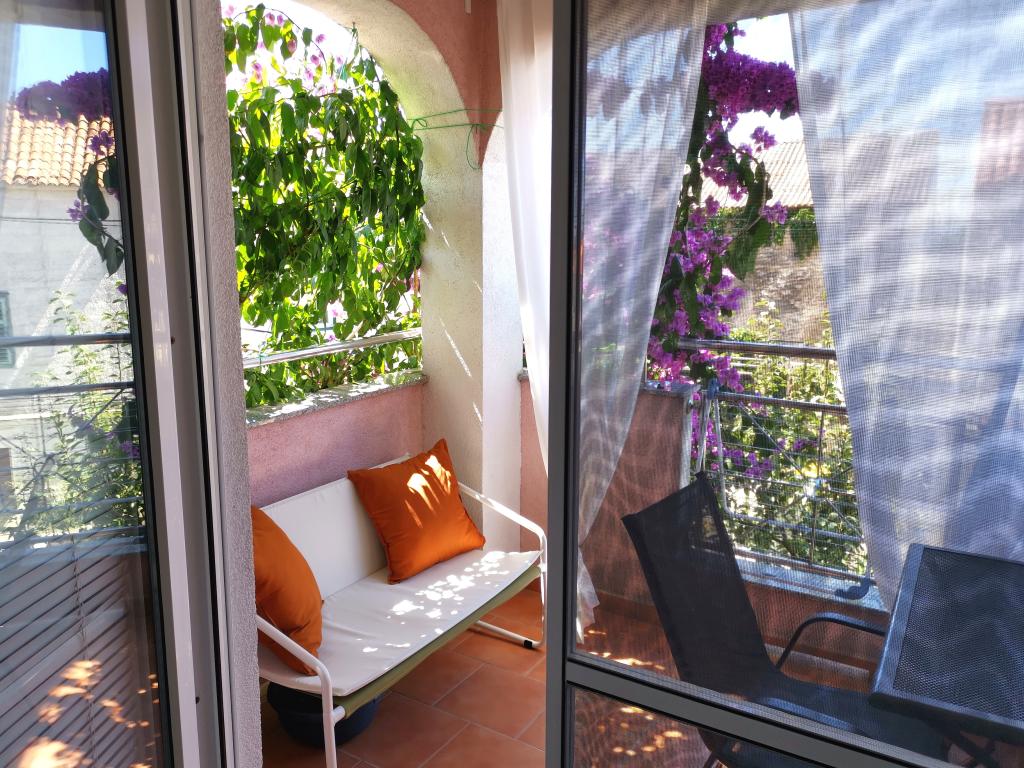 Apartman A4 je vrlo lijep, prostran, čist s velikom terasom s pogledom na more i vrlo dobro opremljenom kuhinjom. Domaćica je ljubazna i ljubazna. Lokacija apartmana je na mirnoj lokaciji, ali u isto vrijeme nekoliko koraka od mora, trgovine i restorana. Za obitelji s jako malom djecom apartman nije najprikladniji, pristupa se spiralnim stepenicama a spavaća soba sa odvojenim krevetima se nalazi izvan apartmana sa posebnim ulazom sa terase, morali smo iskoristiti spavanje na kauču, što smo želio izbjeći odabirom stana s više spavaćih soba. Ali za druge će stan biti dobar izbor.