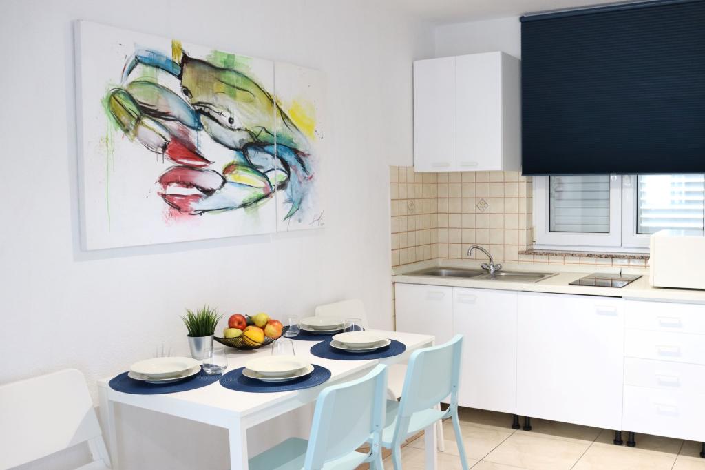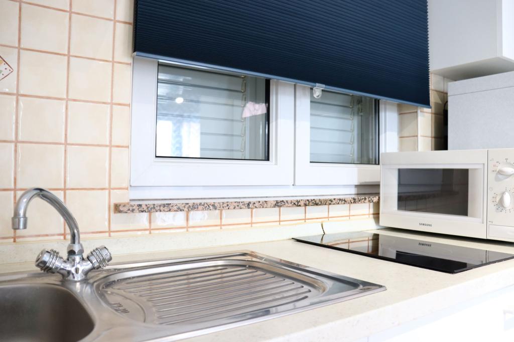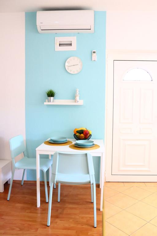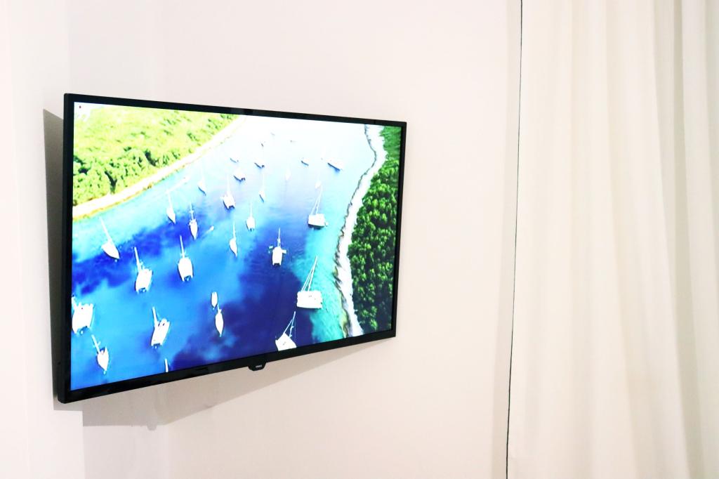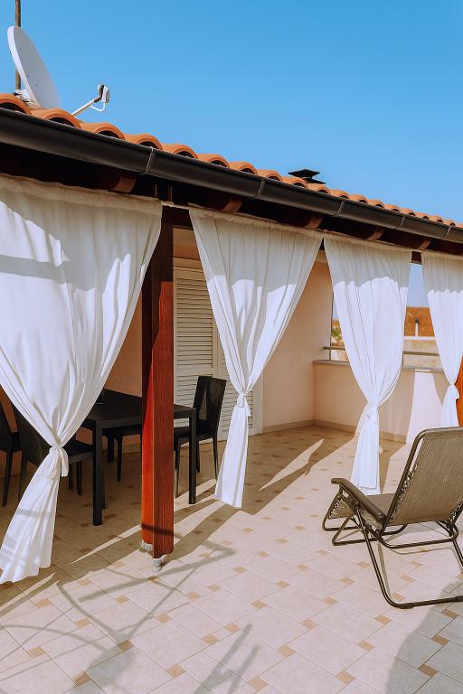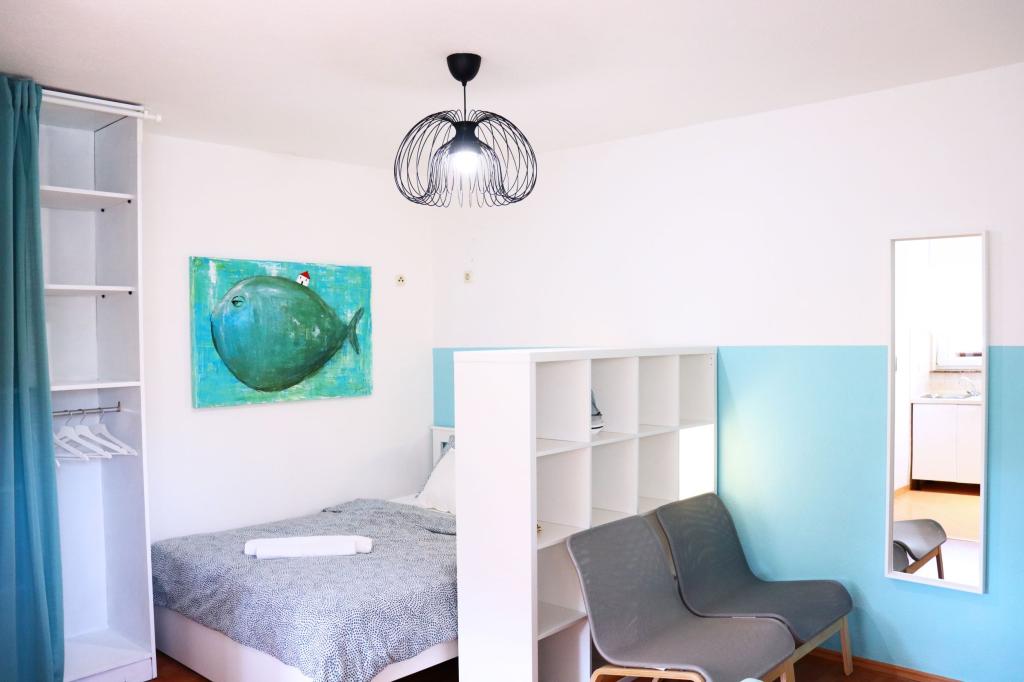 Apartman A4 je vrlo lijep, prostran, čist s velikom terasom s pogledom na more i vrlo dobro opremljenom kuhinjom. Domaćica je ljubazna i ljubazna. Lokacija apartmana je na mirnoj lokaciji, ali u isto vrijeme nekoliko koraka od mora, trgovine i restorana. Za obitelji s jako malom djecom apartman nije najprikladniji, pristupa se spiralnim stepenicama a spavaća soba sa odvojenim krevetima se nalazi izvan apartmana sa posebnim ulazom sa terase, morali smo iskoristiti spavanje na kauču, što smo želio izbjeći odabirom stana s više spavaćih soba. Ali za druge će stan biti dobar izbor.