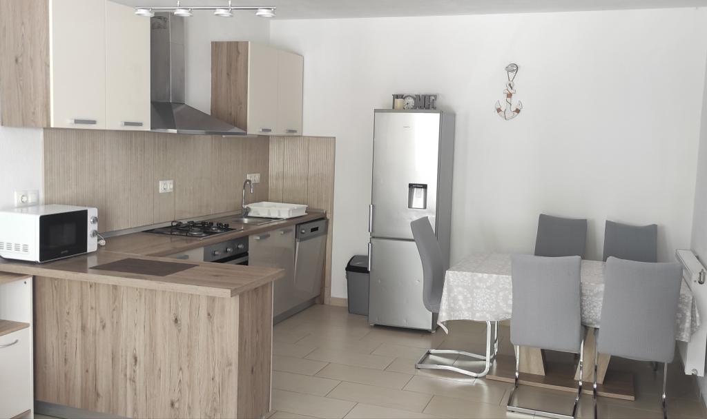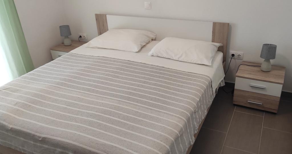 Obiteljska kuća sa dva kompletno opremljena apartmana nalazi se u mirnom dijelu mjesta, nedaleko od centra (2 min hoda) i plaže (3 min hoda). Objekt je okružen velikom okućnicom s mnogo zelenila i hlada, te je odmaknut od prometnice što osim mira, pruža i osjećaj sigurnosti. Ispred se nalazi i veliki privatni parking, te travnjak pogodan za igru. Apartman A2+2 nalazi se u prizemlju kuće, a sastoji se od jedne spavaće sobe, kuhinje, blagovaonice, dnevnog boravka sa garniturom na razvlačenje i kupaonice. Ispred se nalazi prostrana natkrivena terasa. Apartman A4+2 nalazi se na prvom katu, a sastoji se od dvije spavaće sobe, kuhinje, blagovaonice, dnevnog boravka sa garniturom na razvačenje i kupaonice. Ispred se nalaze dvije prostrane natkrivene terase. Svi gosti mogu koristiti grill u dvorištu. Domaćini su ljubazni i susretljivi.