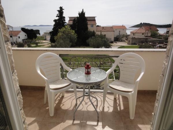Objekat se nalazi 70 metara od plaze, 200 m od centra mjesta gdje se nalaze : pošta, trgovine, restorani, kafići......5 min. hoda. Balkoni apartmana okrenuti s predivnim pogledom na more-plažu, otoke. Apartmani kompletno namješteni, s puno svjetlosti i prozračnosti. Parking za automobile osiguran u dvorištu objekta.