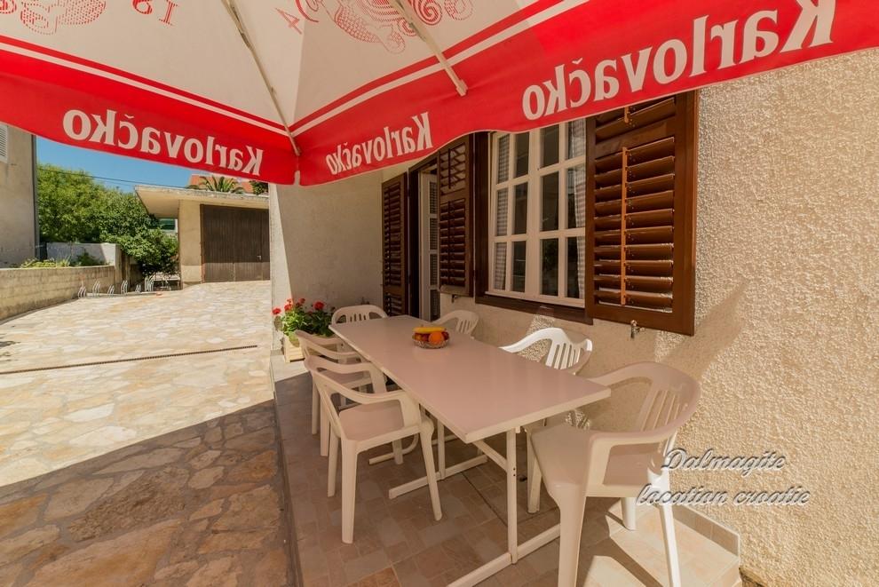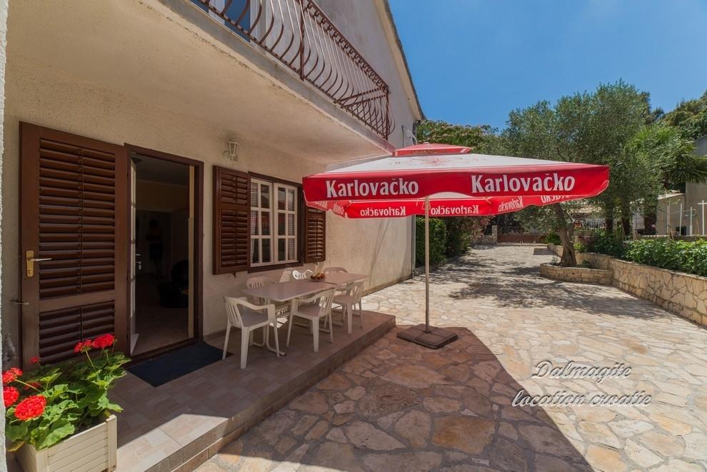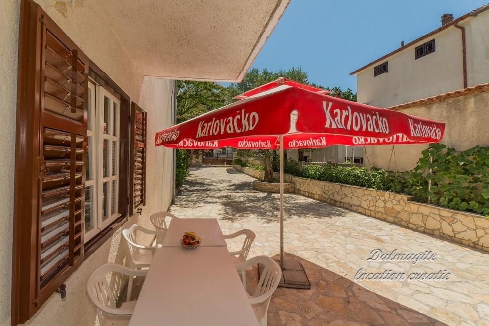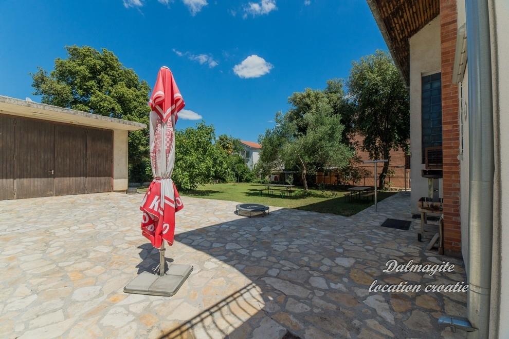 Idealno za veliku obitelj ili grupu prijatelja !! Ova kuća ima 2 apartmana u prizemlju i apartman na prvom katu, posebno se ističe njen veliki vrt ispred i veliko zemljište iza. Cijelo imanje je okruženo niskim zidom, vrlo dobro za sigurnost automobila i vaše djece. Kuća se nalazi u vrlo šumovitom predjelu u Pakoštanima nedaleko od plaže Pilatusa. Nalazite se na 150 metara od plaže Punta i na 300 m od plaže Pilatusa. Trgovina / pekarna udaljena je 100 metara. Vrlo praktično. Kućni ljubimci su prihvaćeni. Morate ih prijaviti u trenutku rezervacije. Roštilj u prizemlju, dječji krevetić, perilica za rublje u svakom smještaju, ručnici na raspolaganju. WI FI: da. Klimatizacija i taxa su u cijena.