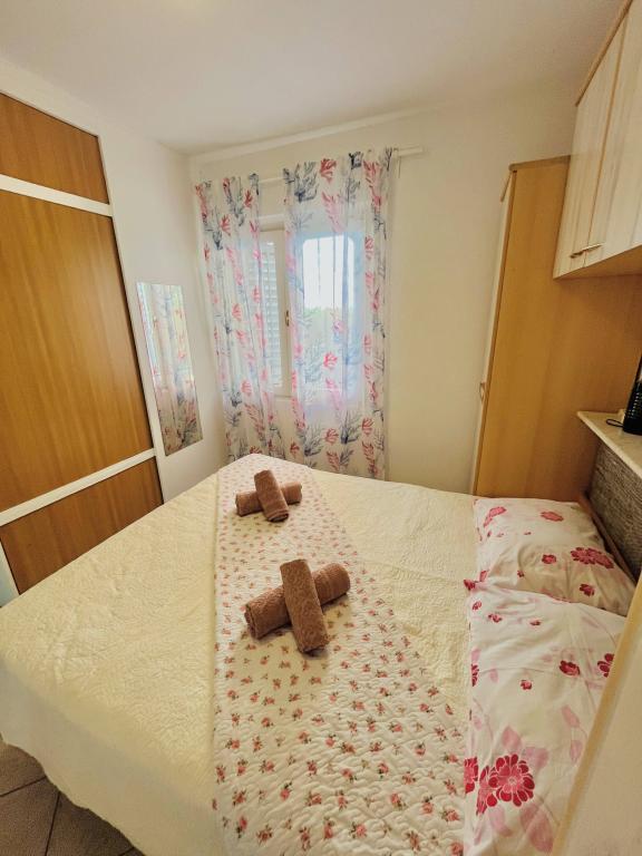 Apartmani Danijela nalaze se u blizini atraktivnog resorta Pine beach i kampa Adria-Kozarica. Naši gosti su najčešće obitelji sa malom djecom. jer se nalazimo u mirnoj ulici bez buke i prometa. Ulica je nešto uža na ulasku i neasfaltirana.ali kratka..iispred kuće imamo osiguran besplatni parking . Nemamo pogled na more, Do prve plaže je oko 300 m kroz kamp Kozarica a ostale plaže cca 500-1000 m. Iznajmljujemo 2 apartmana na prvom katu kuće. koji je ujedno i zadnji. Svaki apartman ima 2 spavaće sobe.kuhinju sa dnevnim boravkom i wc sa tus kabinom te manji balkon sa tendom . Kuhinja ima električnu ploču za kuhanje.kompletno sude.perilicu suđa.frižider sa većom ledenicom, perilicu rublja . Osigurana pegla.daska za peglanje.sušilo za kosu i ručnici kao i sva posteljina. U apartmanu Riba nalaze se extra kvalitetni madraci ( Novo) za Vaš što bolji noćni odmor. Ostali kreveti imaju kvalitetne nadmadrace i madrace stare 2-3 godine, ovisno o krevetu.