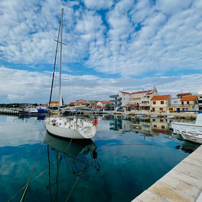 Moderno opremljeni apartmani smješteni na blagoj uzvisini u mirnom predjelu Pakoštana s prekrasnim pogledom na more i otoke, a opet u neposrednoj blizini centra i plaže, mnogobrojnih ugostiteljskih i turističkih sadržaja. Udaljenost od mora je svega 300m. Nudimo vam ugodan smještaj u četiri smještajne jedinice (tri apartmana i jedan studio apartman).