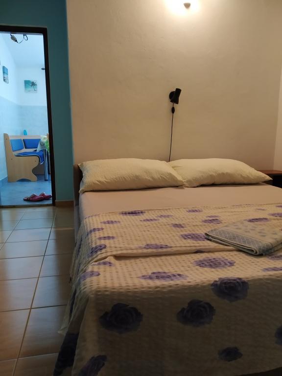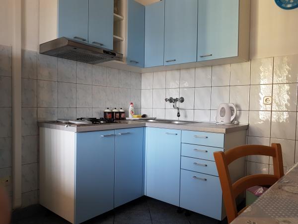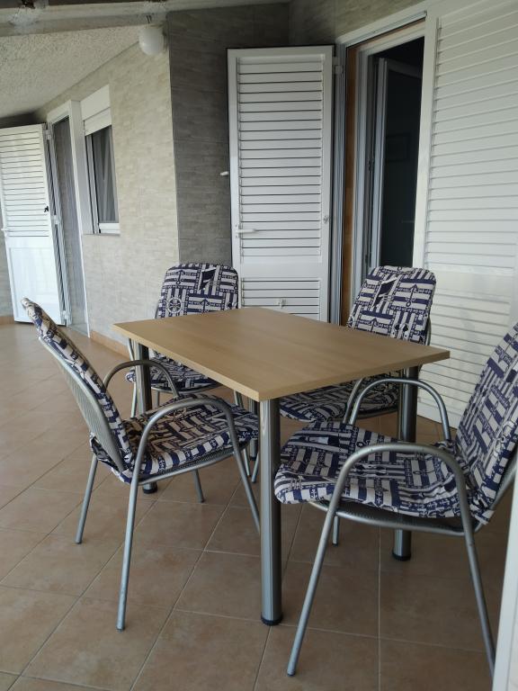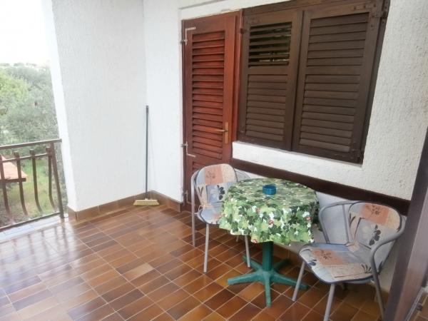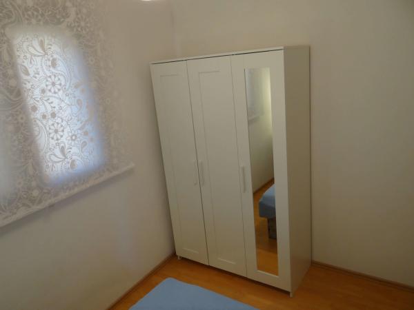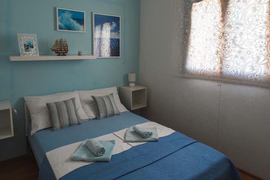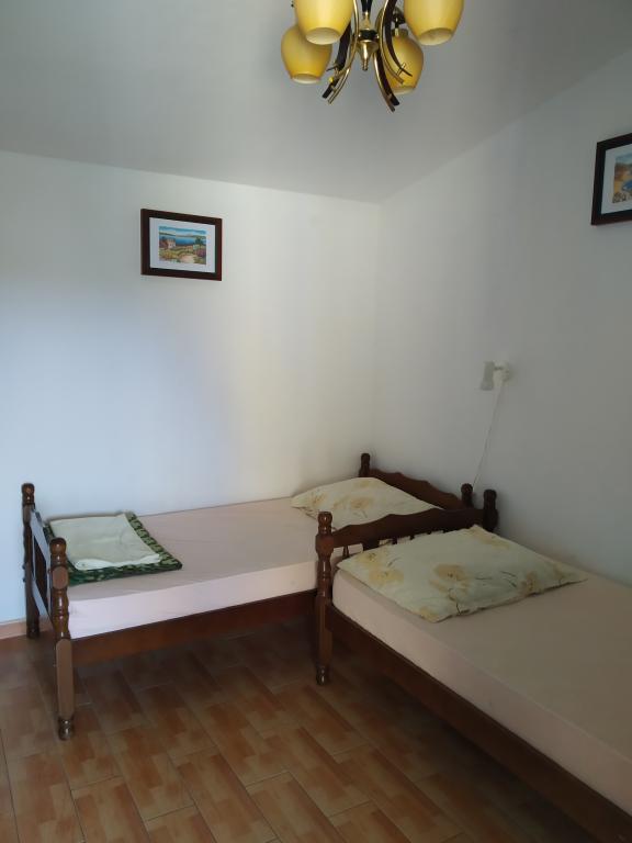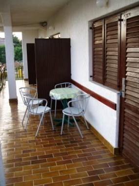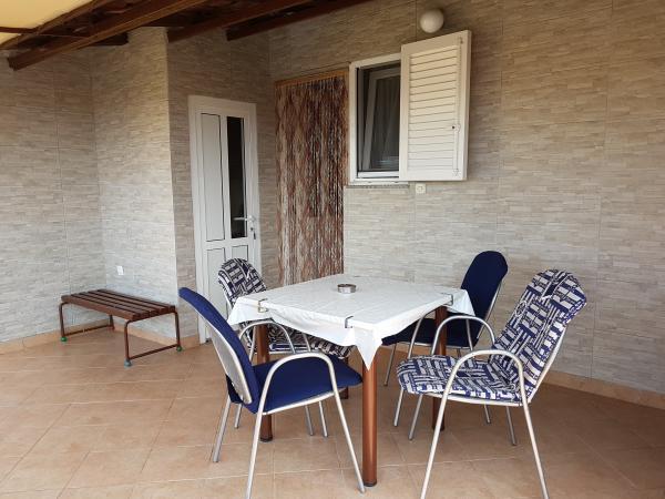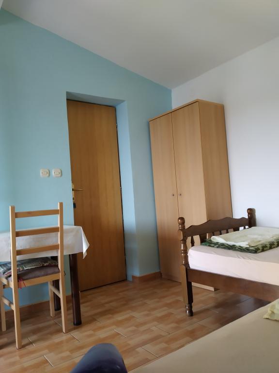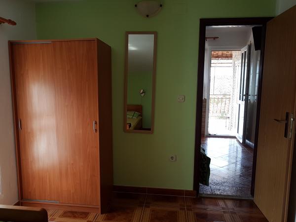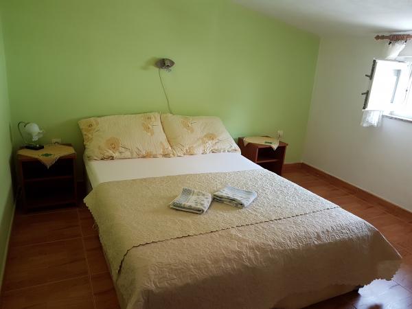 Četverokrevetni APP( 2 2) u mirnom dijelu Pakoštana. APP se sastoji od spavače sobe u kojoj je bračni krevet i trokrilni ormar. U dnevnom boravku je krevet na razvlačenje (200x140), stol sa četri stolice, a u jednom kutu je kuhinja. Kuhinja se sastoji od sudopra, peći za kuhanhe s pečnicom, te hladnjak sa zamrzivačem. Apartman posijeduje klimu i tv. Ispred APP je terasica sa stolom i četri stolice samo za Vaš APP. APP je na prvom katu privatne kuće. Dvosobni apartmani se sastoje od dvije spavaće sobe, kuhinje sa blagavaonom i wc sa tuš kabinom. Apartmani imaju veliku terasu sa pogledom na more, klimu. TV. U dvorištu je zidani roštilj dječije ljuljačke a parkiralište je u ograđenom prostoru.